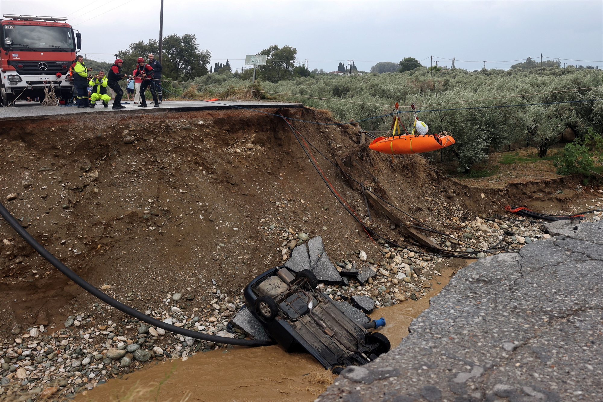 Στους τρεις ανέρχονται πλέον οι άνθρωποι που έχασαν τη ζωή τους από την κακοκαιρία «Daniel», η οποία πλήττει για περισσότερα από δύο 24ωρα πολλές περιοχές της χώρας. Eνας 82χρονος ανασύρθηκε χθες χωρίς τις αισθήσεις του, αφότου καταπλακώθηκε από όχημα στην περιοχή Ελληνόπυργος της Καρδίτσας. Ο ηλικιωμένος εντοπίστηκε από στελέχη της Πυροσβεστικής Υπηρεσίας Μουζακίου, δεδομένου ότι στο σημείο δεν μπορούσε να πλησιάσει ασθενοφόρο. Νωρίτερα μια ηλικιωμένη γυναίκα βρέθηκε νεκρή στην Πάλτση Πηλίου.