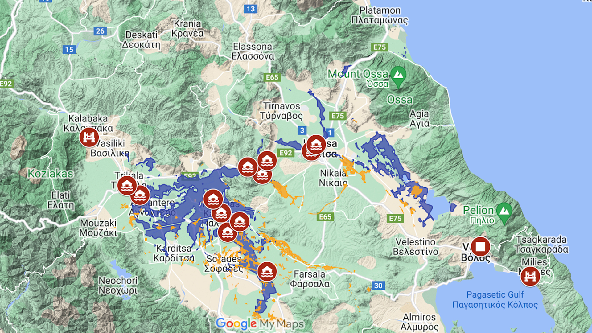Σύμφωνα με τις εικόνες από το δορυφορικό σύστημα Copernicus της Ε.Ε., που ενεργοποιήθηκε μετά από αίτημα της Ελλάδας, οι πλημμυρισμένες εκτάσεις -έως το απόγευμα Πέμπτης, οπότε υπήρχαν διαθέσιμα στοιχεία- ανέρχονται σε 729.000 στρέμματα.