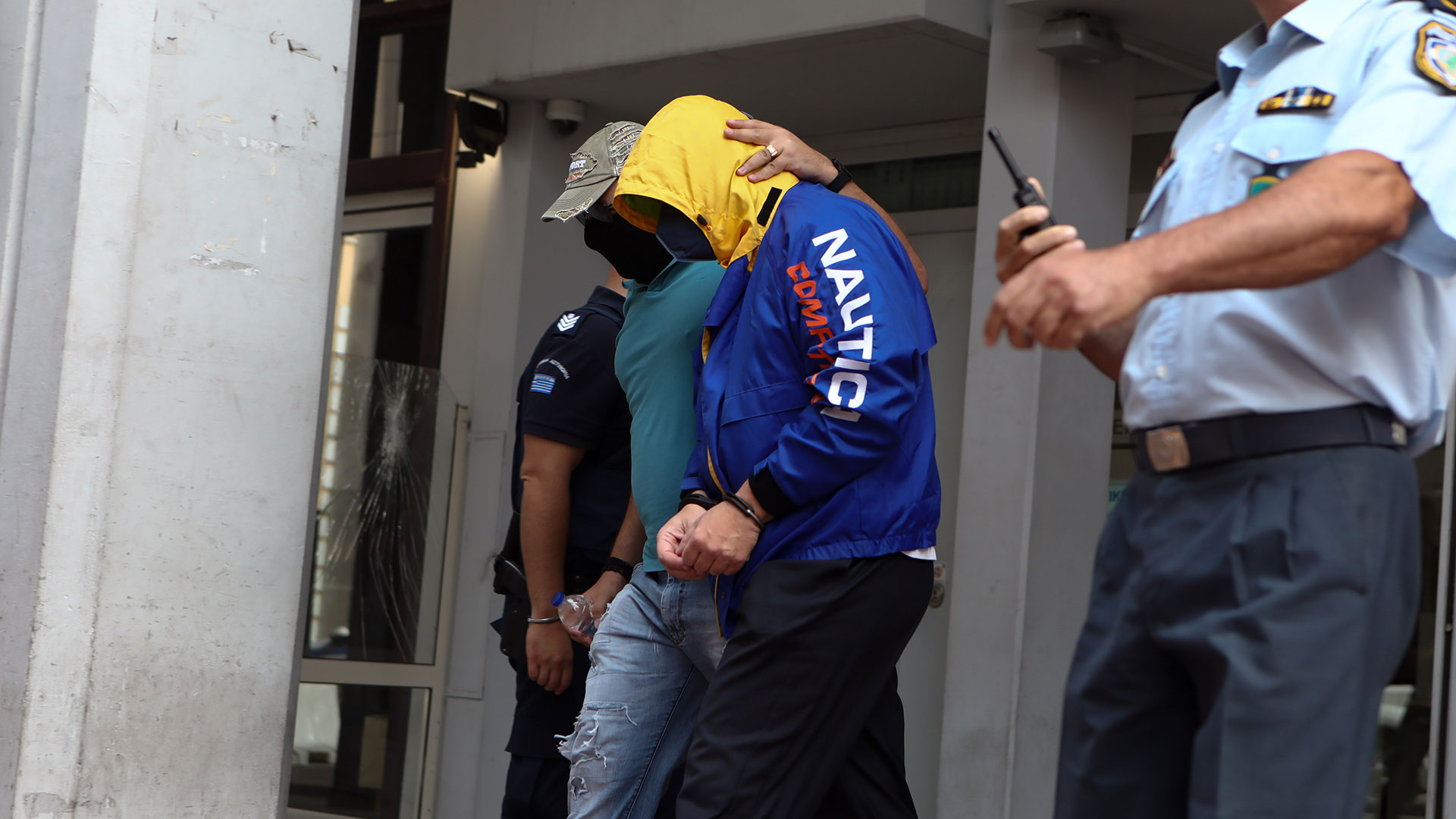 Σήμερα στην Εισαγγελία οδηγήθηκαν οι τρεις από τους τέσσερις συλληφθέντες, καθώς ο ένας εκ των κατηγορουμένων -ο υποπλοίαρχος– αντιμετωπίζει πρόβλημα υγείας και είναι στο νοσοκομείο.