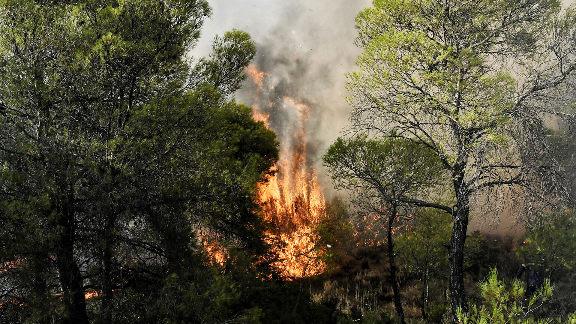 Σύμφωνα με τα στοιχεία του Πυροσβεστικού Σώματος η φωτιά καίει σε δασική έκταση, σε απόσταση από τον οικισμό και πλησίον πεδίου βολής.