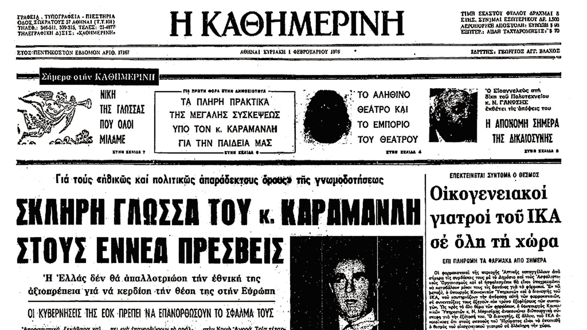 Σύμφωνα με την «Καθημερινή» της 1ης Φεβρουαρίου, ο πρωθυπουργός «υπέμνησεν ότι αι Κυβερνήσεις των Εννέα ενεθάρρυναν την υποβολήν της ελληνικής αιτήσεως, χωρίς να την συνδέσουν με οιονδήποτε όρον», και τόνισε ότι οι ευρωπαϊκές κυβερνήσεις «έχουν αναλάβει συγκεκριμένες δεσμεύσεις έναντι της ελληνικής και για τον λόγο αυτόν καλούνται να “επανορθώσουν το σφάλμα της επιτροπής”».