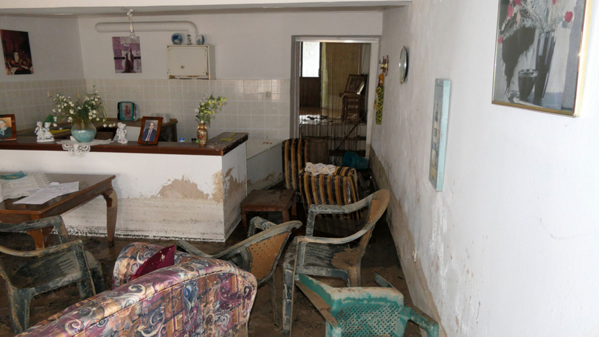«Τα έπιπλα, οι κουζίνες, όλα έχουν καταστραφεί. Σε ορισμένα καφενεία του χωριού τα μπάζα φτάνουν το ένα μέτρο», τονίζει.