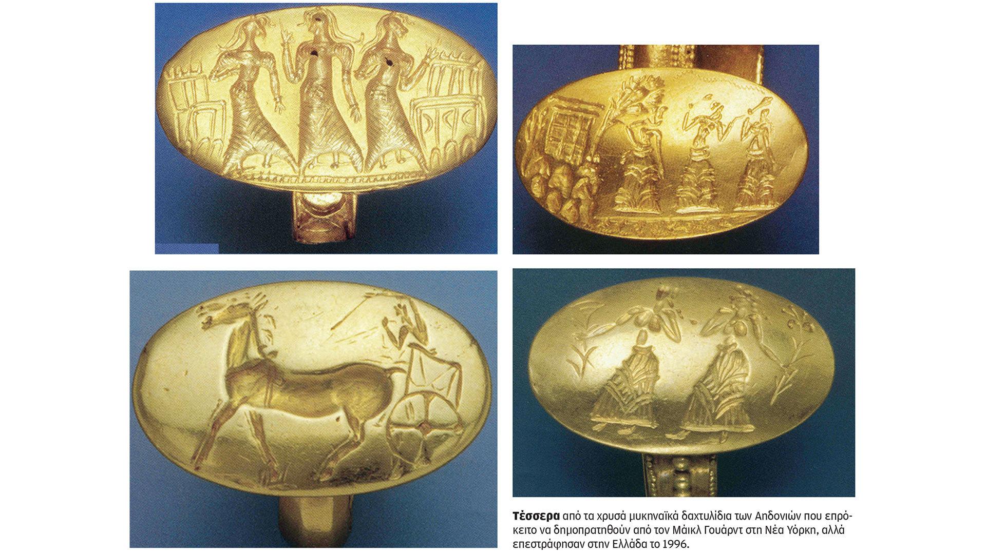 Ηταν Απρίλιος του 1993 όταν στην εφημερίδα New York Times δημοσιεύθηκε ένα ρεπορτάζ για μια σπάνια συλλογή χρυσών μυκηναϊκών αντικειμένων την οποία επρόκειτο να δημοπρατήσει ο Γουάρντ με τιμή εκκίνησης 1,5 εκατ. δολάρια. Η Ελλάδα διεκδίκησε την επιστροφή τους, υποστηρίζοντας ότι τα αρχαία προέρχονταν από συλημένο τάφο στα Αηδόνια Κορινθίας. Οι θαλαμωτοί τάφοι στο μυκηναϊκό νεκροταφείο ανατολικά του χωριού είχαν λεηλατηθεί συστηματικά στο παρελθόν.