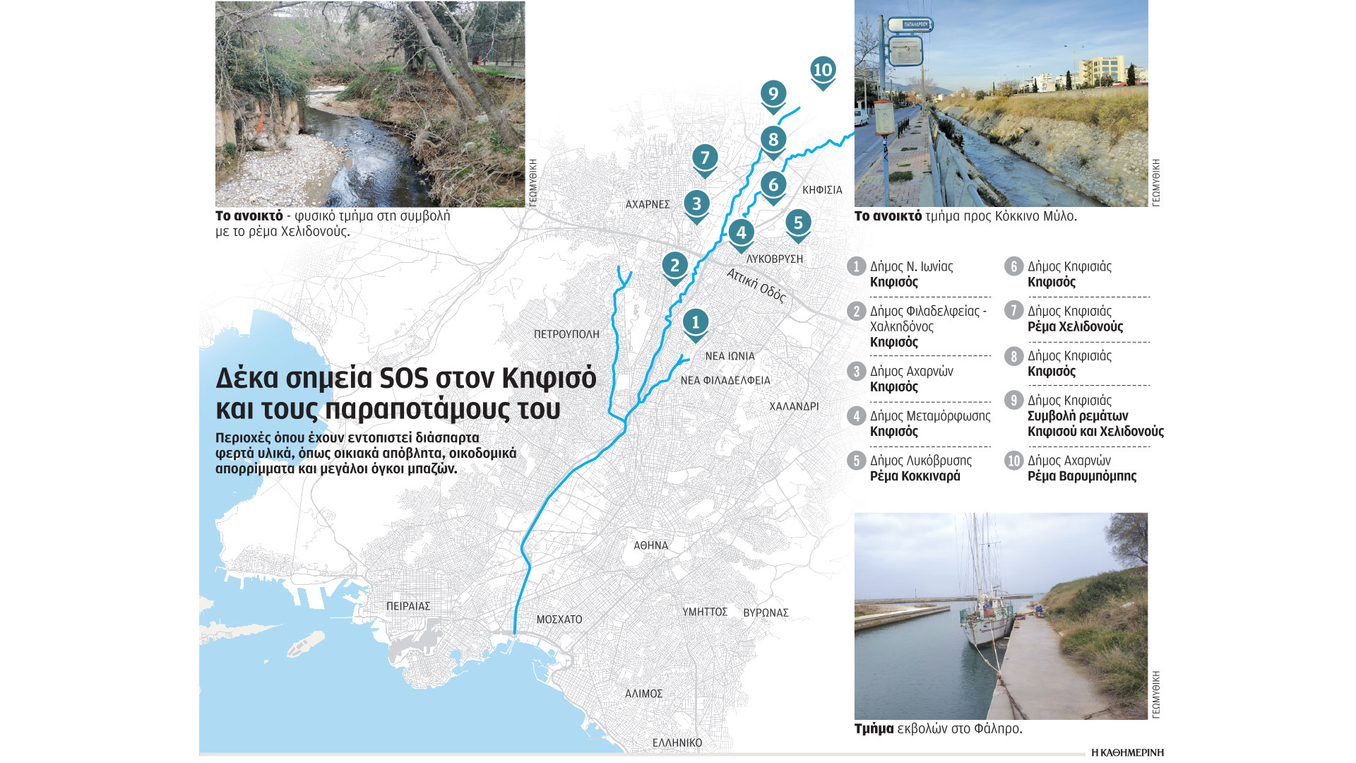 Της χθεσινής απόφασης του υπουργείου Πολιτικής Προστασίας προηγήθηκε (προ εβδομάδας) αυτοψία, κατά την οποία –σύμφωνα με πληροφορίες της «Κ»– εντοπίστηκαν σε τουλάχιστον δέκα σημεία σε δήμους περί τον Κηφισό διάσπαρτα φερτά υλικά, όπως οικιακά απόβλητα, οικοδομικά απορρίμματα και μεγάλοι όγκοι μπάζων.