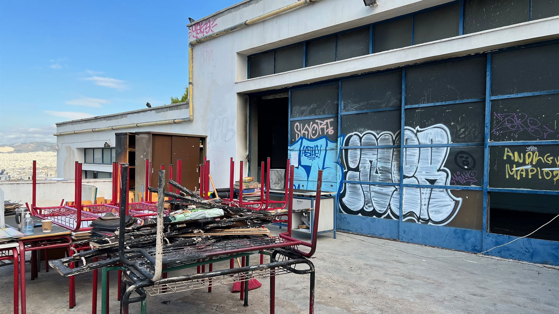 «Δεν είναι πρωτοφανές να μπαίνουν εξωσχολικοί στο σχολείο. Συμβαίνει σχεδόν κάθε βράδυ. Βλέπετε πώς είναι τα κτίρια, καλυμμένα με αλλεπάλληλες στρώσεις γκράφιτι και tagging, όχι μόνο οι τοίχοι αλλά και οι πόρτες και τα παράθυρα. Αυτό που έγινε χθες βράδυ, όμως, μας ανησυχεί πολύ. Πρόσφατα επίσης μπήκαν στον χώρο όπου βρίσκεται ο καυστήρας και έκλεψαν τον πυροσβεστήρα. Δυστυχώς, παρά τις συνεχείς εκκλήσεις στις υπηρεσίες του Δήμου Αθηναίων, δεν έχει γίνει τίποτα ουσιαστικό που να εμποδίζει ή έστω να δυσκολεύει την πρόσβαση εξωσχολικών στο κτίριο».