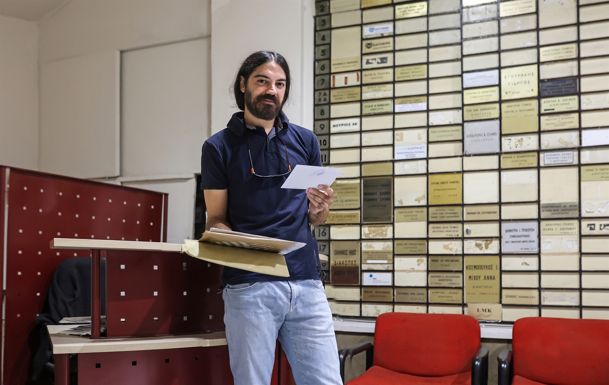 «Κάθε μέρα σκέφτομαι ότι θα φύγω και κάθε μέρα το αναβάλλω. Υπάρχει κάτι μαγικό εδώ», παραδέχεται. Ο κόσμος, οι ιστορίες, οι άνθρωποι. «Αν δεν ήταν ο Βασίλης θα είχε διαλυθεί το κτίριο, τίποτα δεν θα λειτουργούσε», σχολιάζει ο διαχειριστής που βγαίνει από το ασανσέρ και βιαστικός κινείται προς την έξοδο. «Να, βλέπεις; Υπάρχει εκτίμηση, αγάπη. Εχει ανοίξει ο κύκλος μου, έχω γνωρίσει ανθρώπους που αλλιώς δεν θα γνώριζα ποτέ. Ακόμη και εσείς που ήρθατε εδώ, αυτή η δουλειά σάς έφερε», λέει. Το κτίριο έχει 200 γραφεία, από τα οποία τα 60, περίπου, είναι σε λειτουργία. «Πολλοί τα χρησιμοποιούν ως αποθήκες, άλλοι δεν δείχνουν κανένα ενδιαφέρον. Κάποιους τόσα χρόνια δεν τους έχω δει ποτέ», διηγείται. Κόσμος μπαινοβγαίνει διαρκώς. Στους περισσότερους ο Βασίλης απευθύνεται με το όνομά τους. Κάποιοι κοντοστέκονται να ζητήσουν μια «χάρη», ένα δέμα που περιμένουν «οπωσδήποτε», το δικόγραφο που ο συνάδελφος θα έρθει σε λίγη ώρα να παραλάβει. Αλλοι βιάζονται και δεν ρίχνουν δεύτερη ματιά και μερικοί πιάνουν το νήμα της χθεσινής συζήτησης, σαν να μην πέρασε στιγμή – «έπεσε ο πυρετός, είναι καλύτερα το παιδί αλλά δεν πήγε σχολείο».