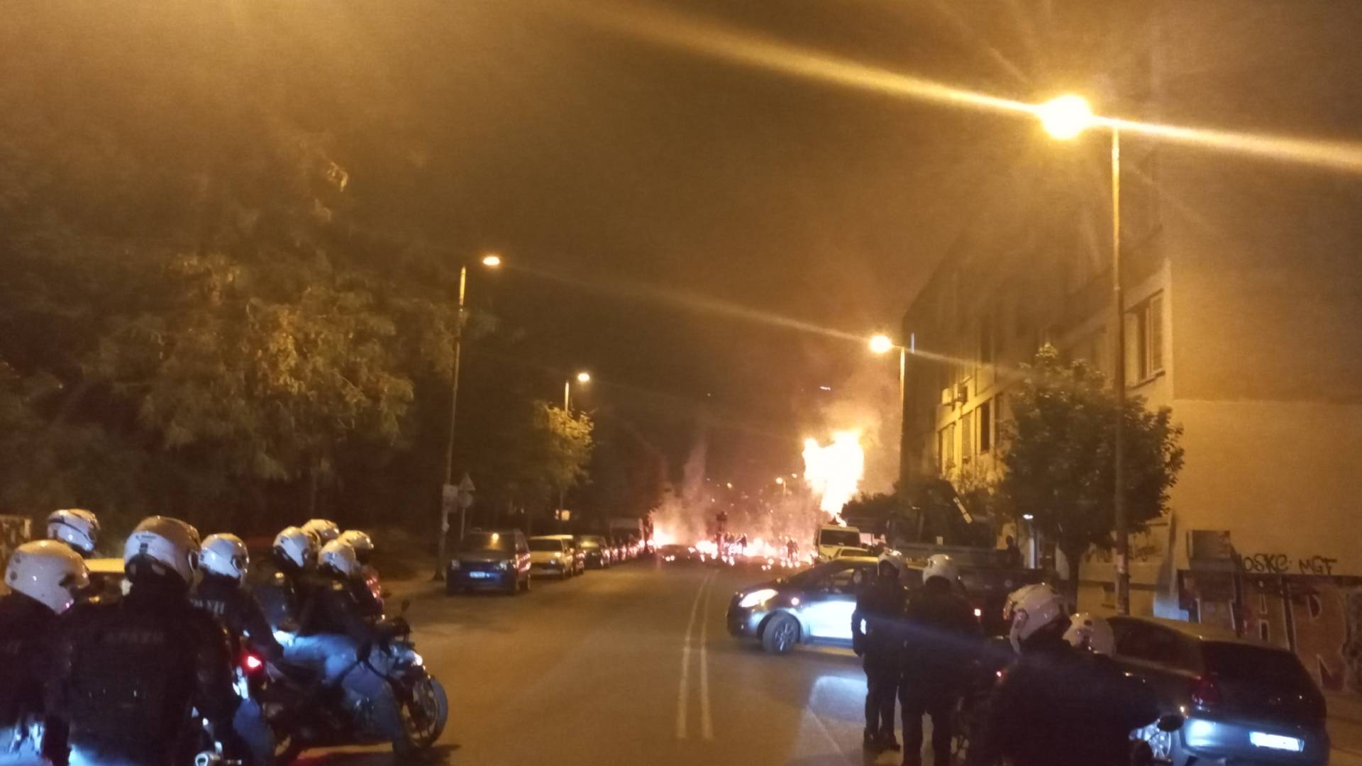 Στις φλόγες τυλίχθηκαν οχήματα στην Ούλωφ Πάλμε στη διάρκεια των #επεισοδίων που προκάλεσαν κουκουλοφόροι, οι οποίοι βγήκαν από την #πανεπιστημιούπολη στου #Ζωγράφου pic.twitter.com/o1tClK1FEI
