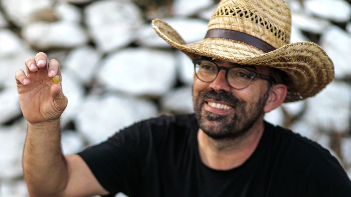 Ο οινοποιός αποφάσισε να αναζητήσει παλιά αμπέλια σημαντικών ποικιλιών και σε άλλες περιοχές. Μια λύση ήταν η Σαντορίνη, η περιοχή της Ελλάδας που δεν επλήγη από την επιδημία και άρα έχει πολλά αυτόρριζα αμπέλια. Ομως, όπως ο ίδιος ανέφερε σε μια συζήτησή του με τον διάσημο Ελληνα οινολόγο Πάνο Ζουμπούλη με τον οποίο από το 2019 έχουν δημιουργήσει φορέα υποστήριξης της προστασίας αυτόρριζων αμπελιών, το «νησί έχει πολύ κόσμο». Και κάπως έτσι ξεκίνησαν όλα…