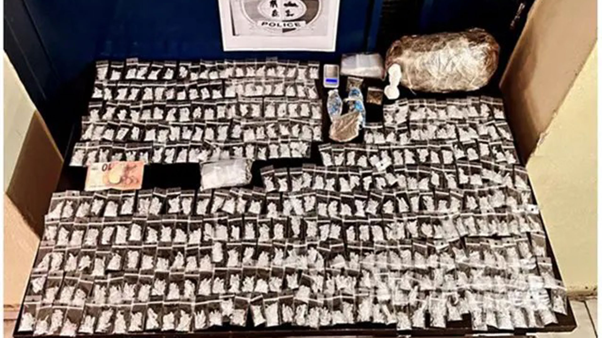 Από έρευνα στα σπίτια όπου αποθήκευαν τις ναρκωτικές ουσίες, βρέθηκαν συνολικά και κατασχέθηκαν 133,5 γραμμ. ηρωίνης, 505 γραμμ. κρυσταλλικής μεθαμφεταμίνης, 411,85 γραμμ. κάνναβης, 20 γραμμ. άγνωστης σύστασης ουσίας, πλαστό χαρτονόμισμα, ζυγαριά ακριβείας και πλήθος κενών συσκευασιών.
