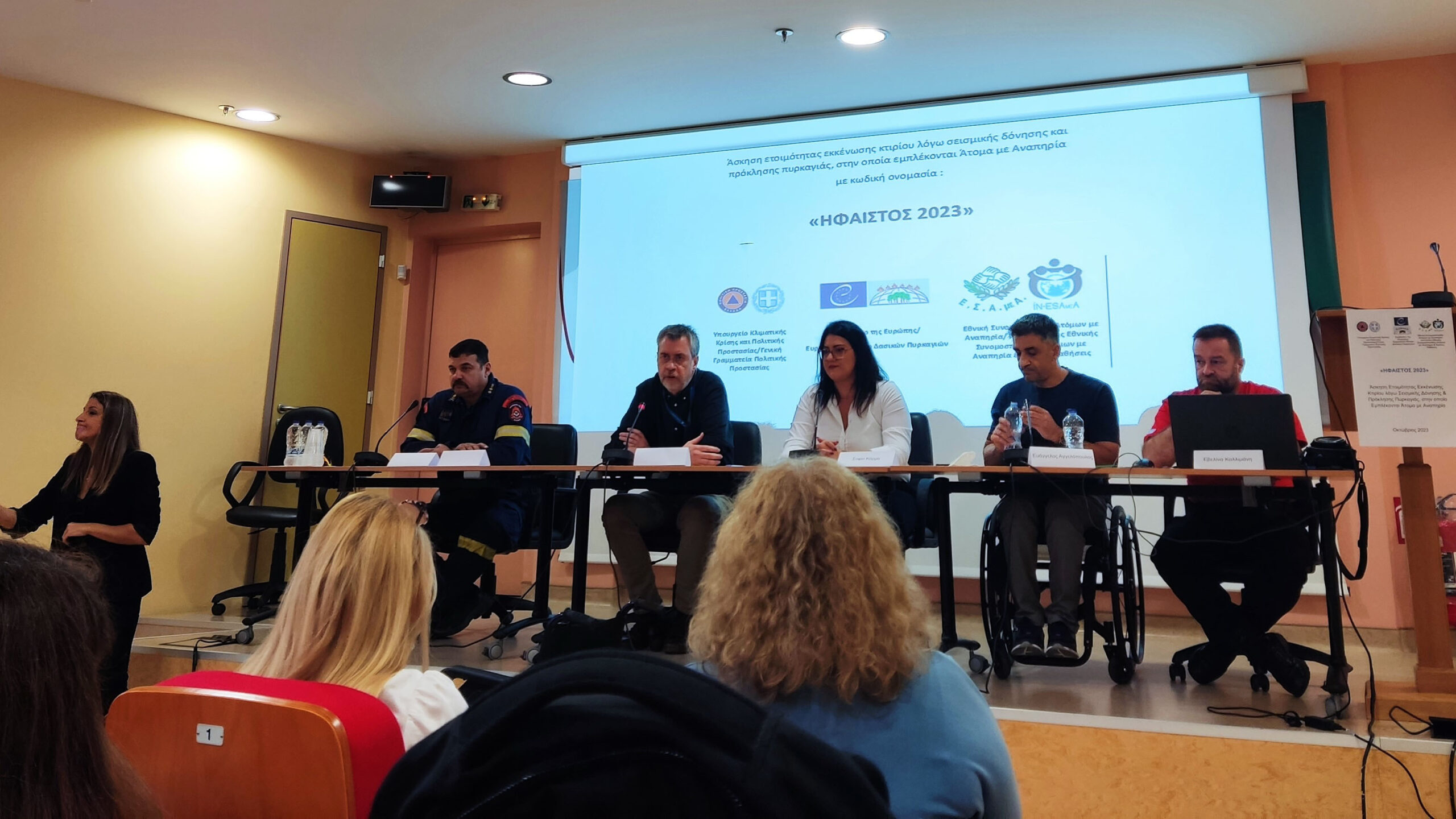 Η άσκηση υλοποιήθηκε στο πλαίσιο σχετικής δράσης του ΕΚΕΔΑΠ με σκοπό τη συμπερίληψη Ατόμων με Αναπηρία στην πρόληψη και ετοιμότητα έναντι καταστροφών.