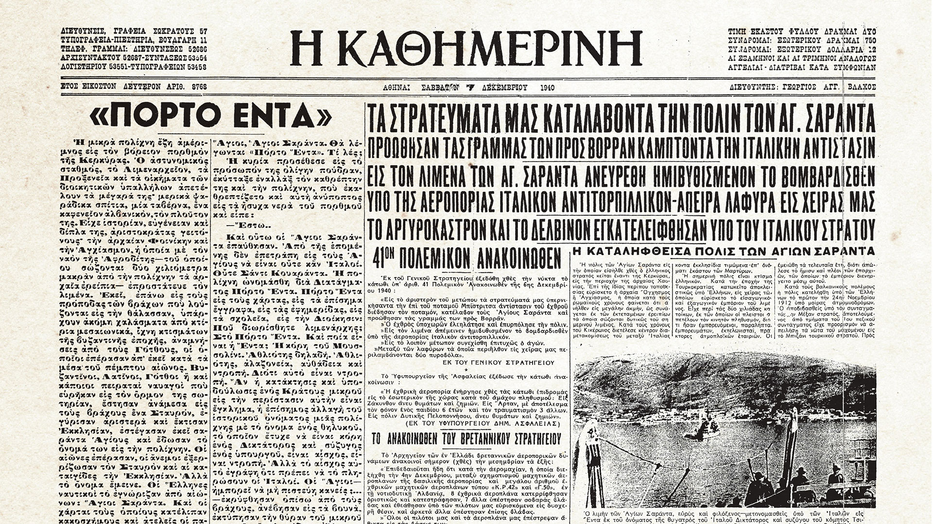 Το Σάββατο της 7ης Δεκεμβρίου 1940 ξημερώνει θριαμβευτικό για τους μαχόμενους Ελληνες: οι Αγιοι Σαράντα, σημαντική ναυτική, στρατιωτική και αεροπορική βάση, πέφτουν στα χέρια του ελληνικού στρατού.