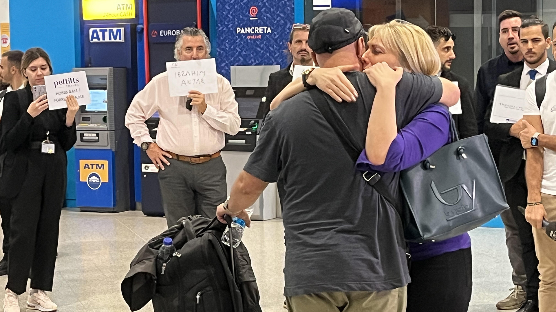 Ενας από τους πρώτους που επιβάτες που βγήκαν ήταν ο Φαγιάντ Αλέξανδρος, ο οποίος έπεσε αμέσως στην αγκαλιά της συζύγου του, που τον περίμενε με δάκρυα στα μάτια.