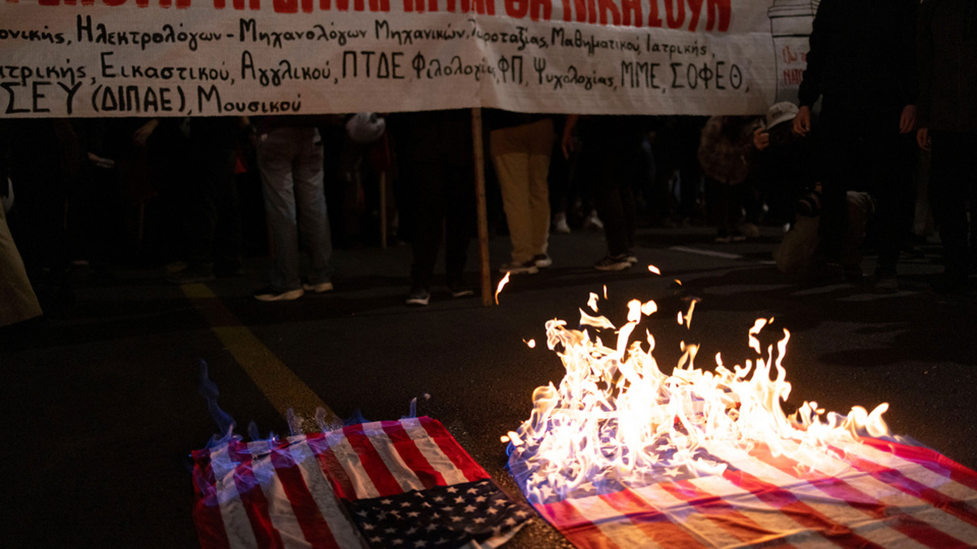 Θεσσαλονίκη: Διαδηλωτές έκαψαν σημαίες των ΗΠΑ