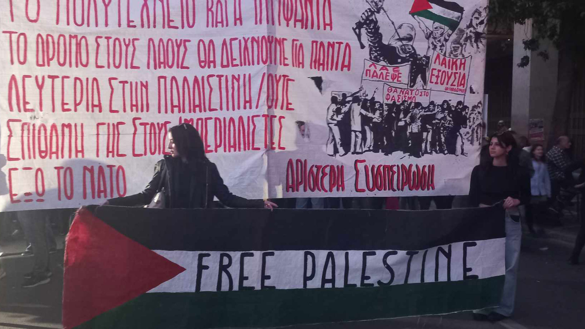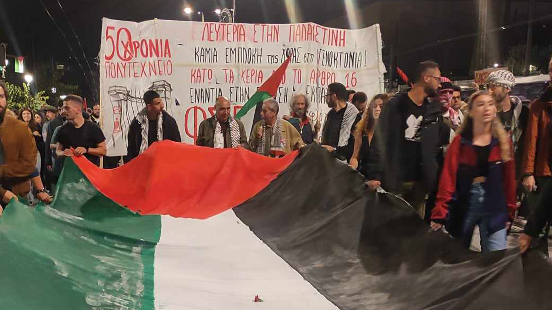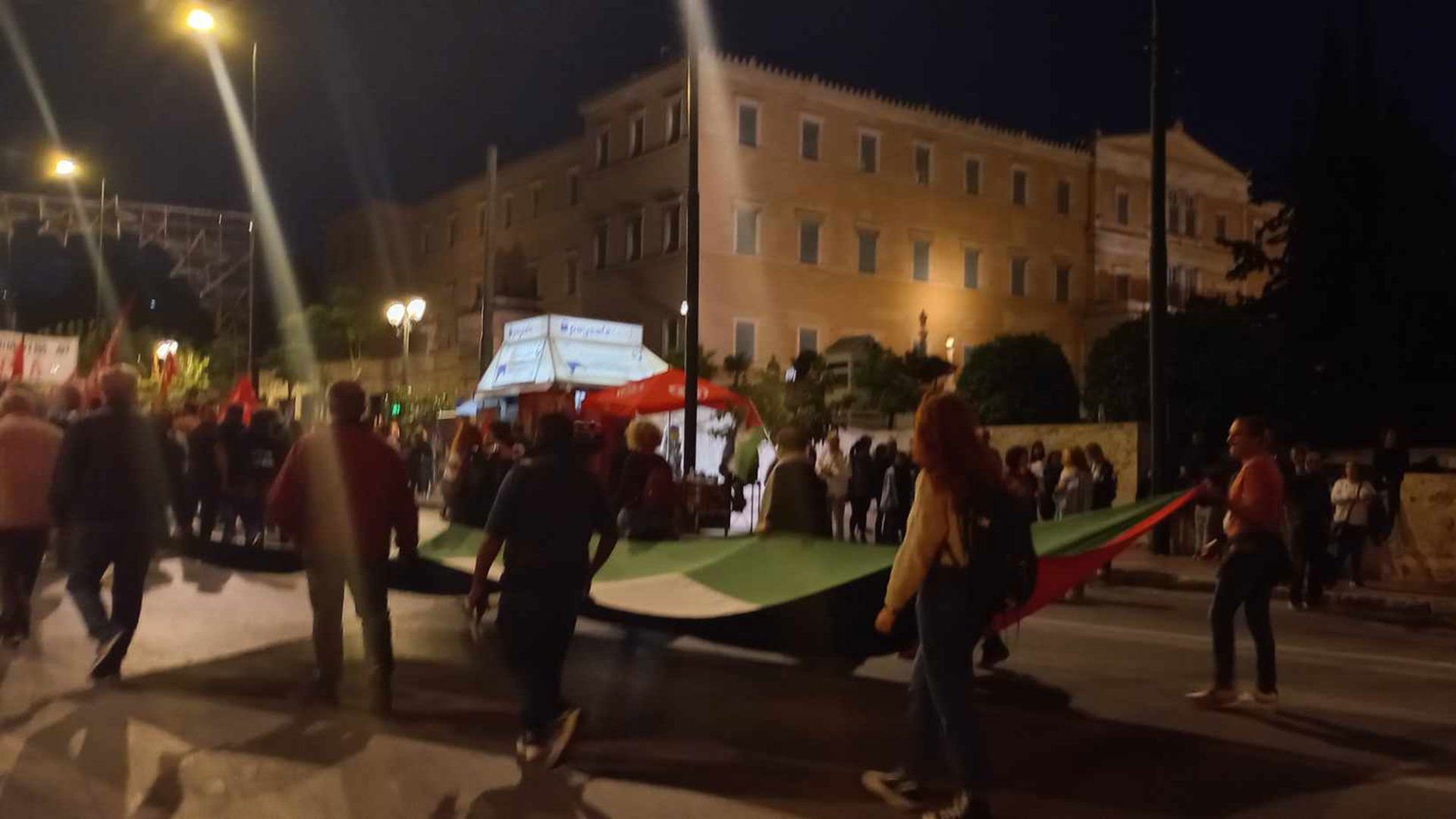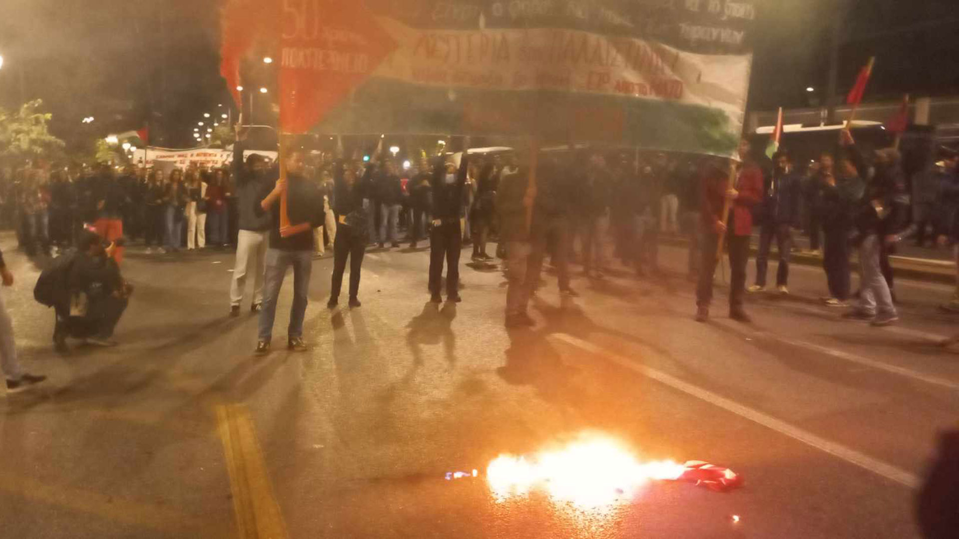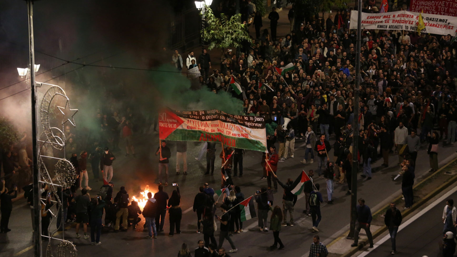 - 20:06Βασιλίσσης Σοφίας: Καπνογόνα στα χρώματα της Παλαιστίνης