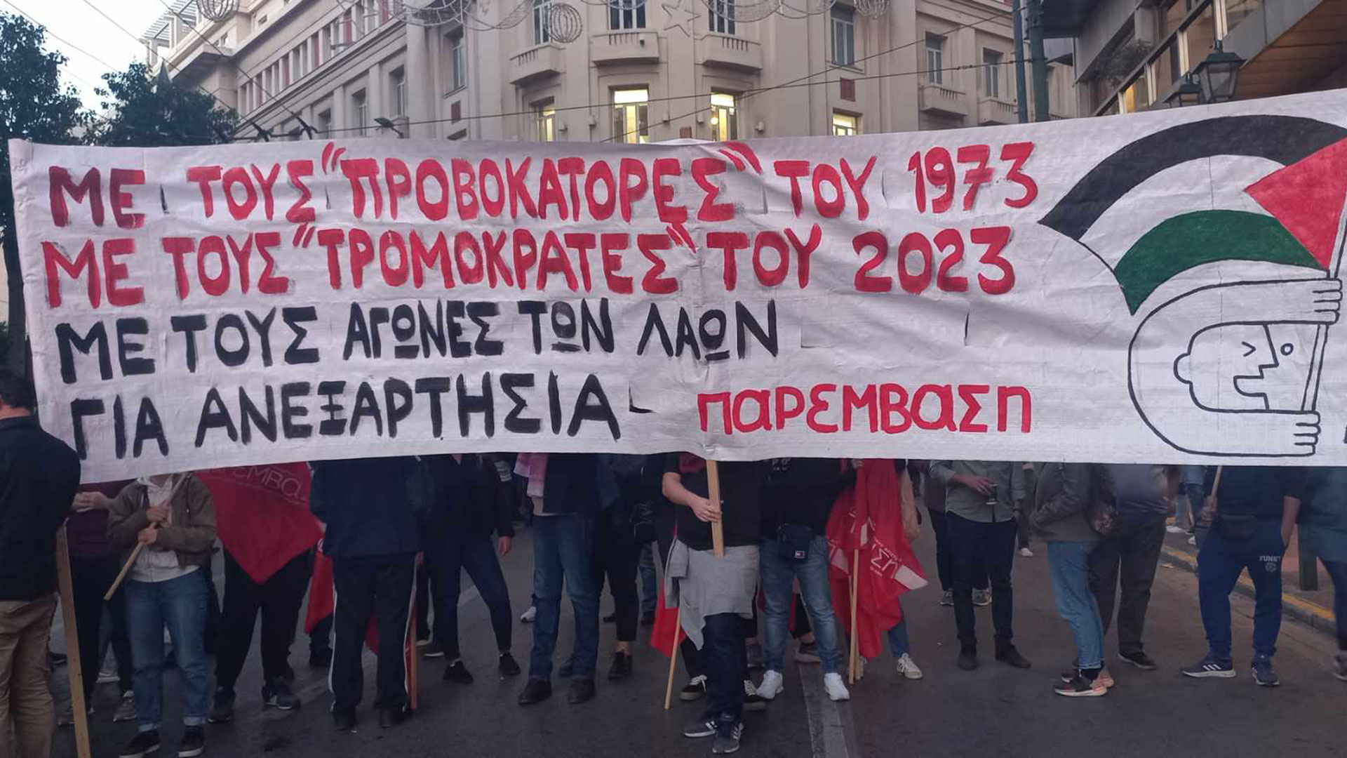 Στην αμερικανική πρεσβεία η κεφαλή της πορείας για την επέτειο της εξέγερσης του Πολυτεχνείου #Πολυτεχνειο2023 pic.twitter.com/7Own3gTR5v