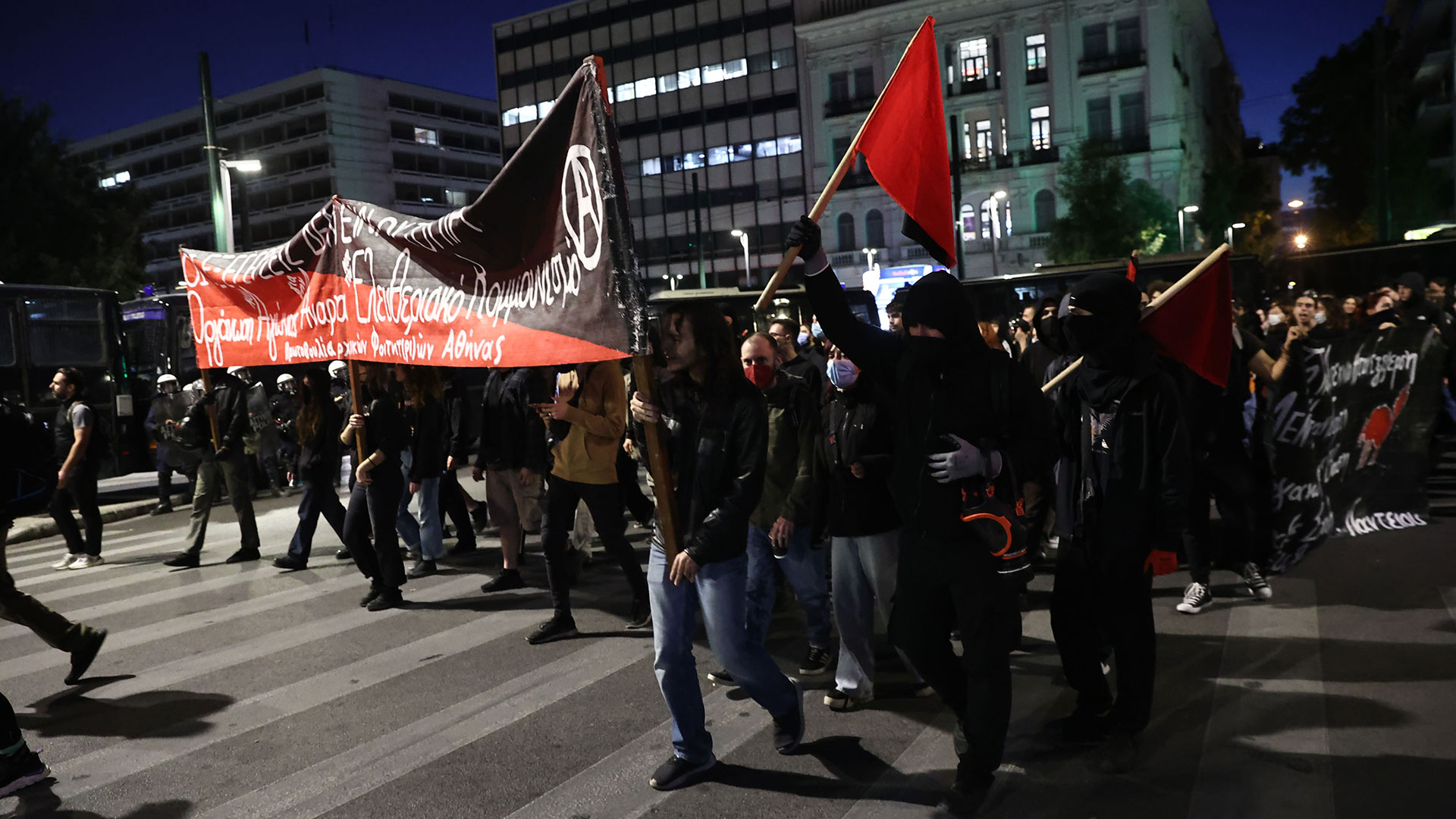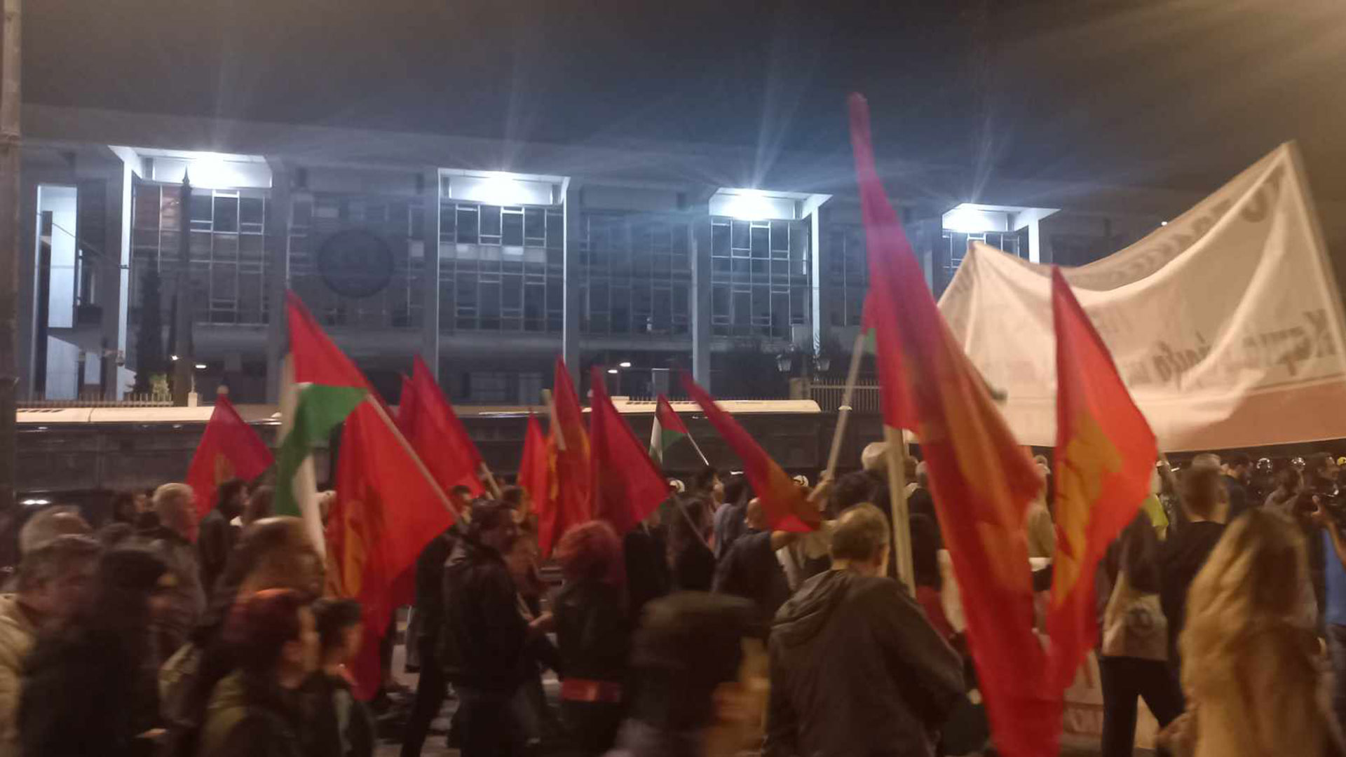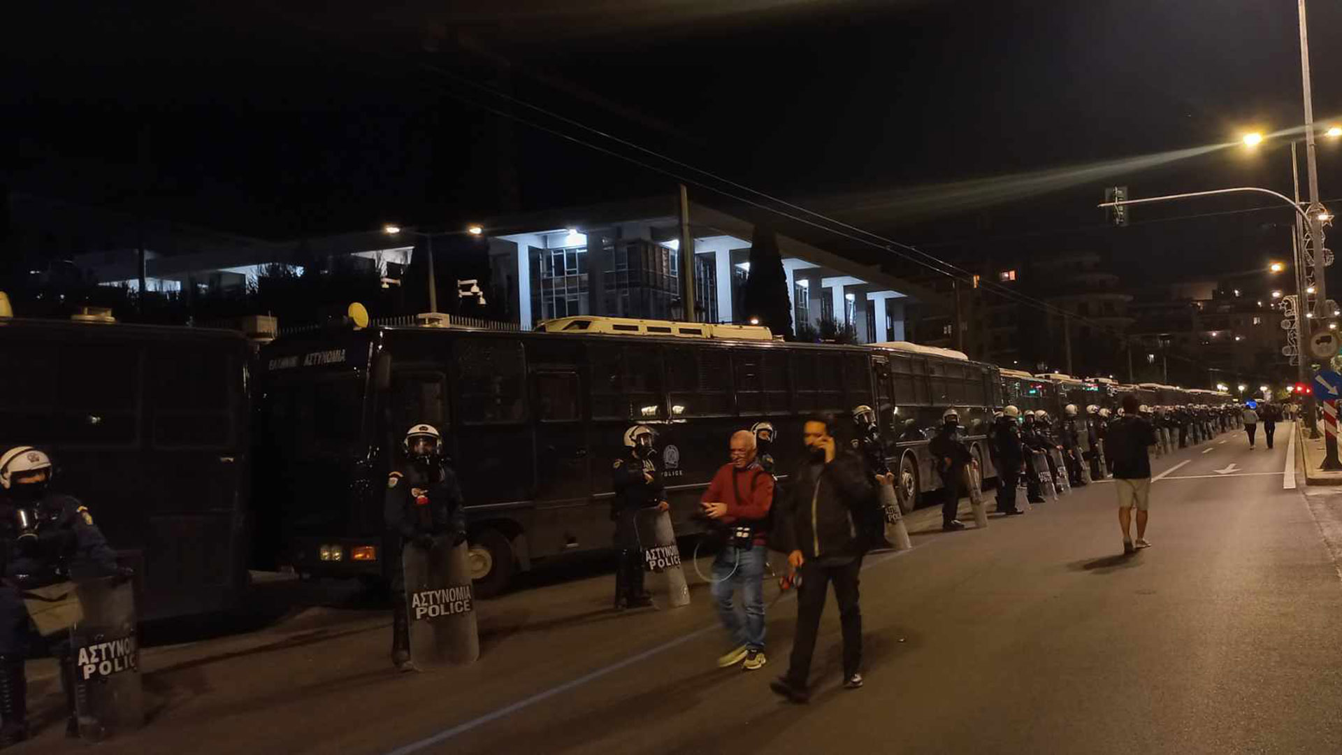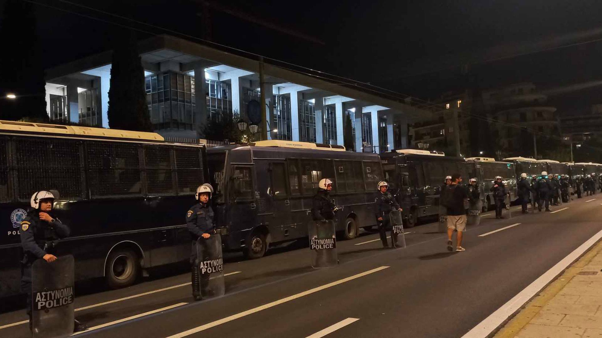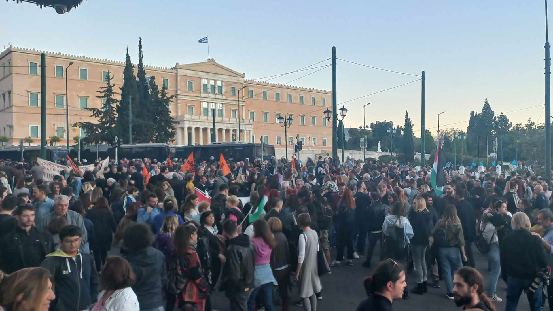Περισσότερες από 10 αστυνομικές κλούβες έχουν αναπτυχθεί περιμετρικά του κτιρίου, ενώ στο σημείο πλησιάζει ο κύριος όγκος των διαδηλωτών.