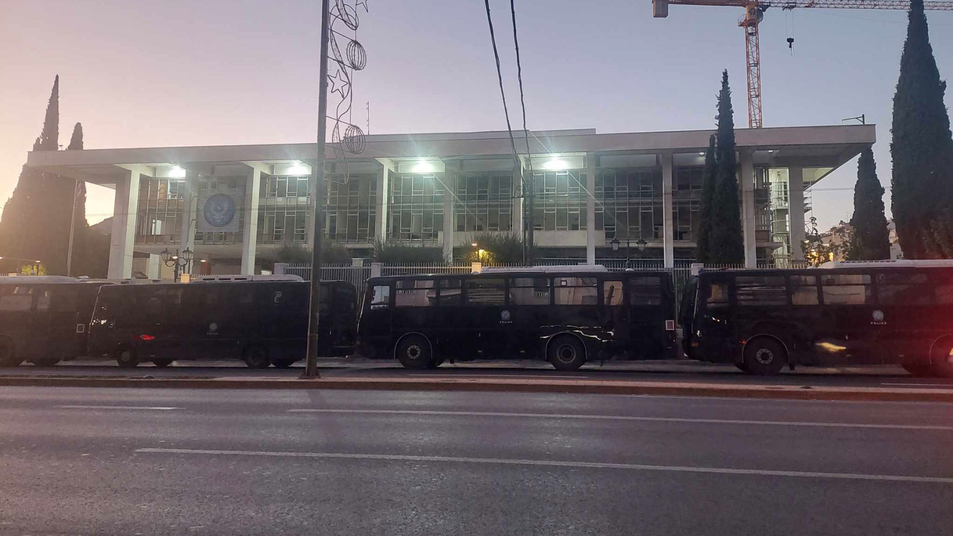 «Περικυκλωμένη» από κλούβες της ΕΛ.ΑΣ. η πρεσβεία των ΗΠΑ