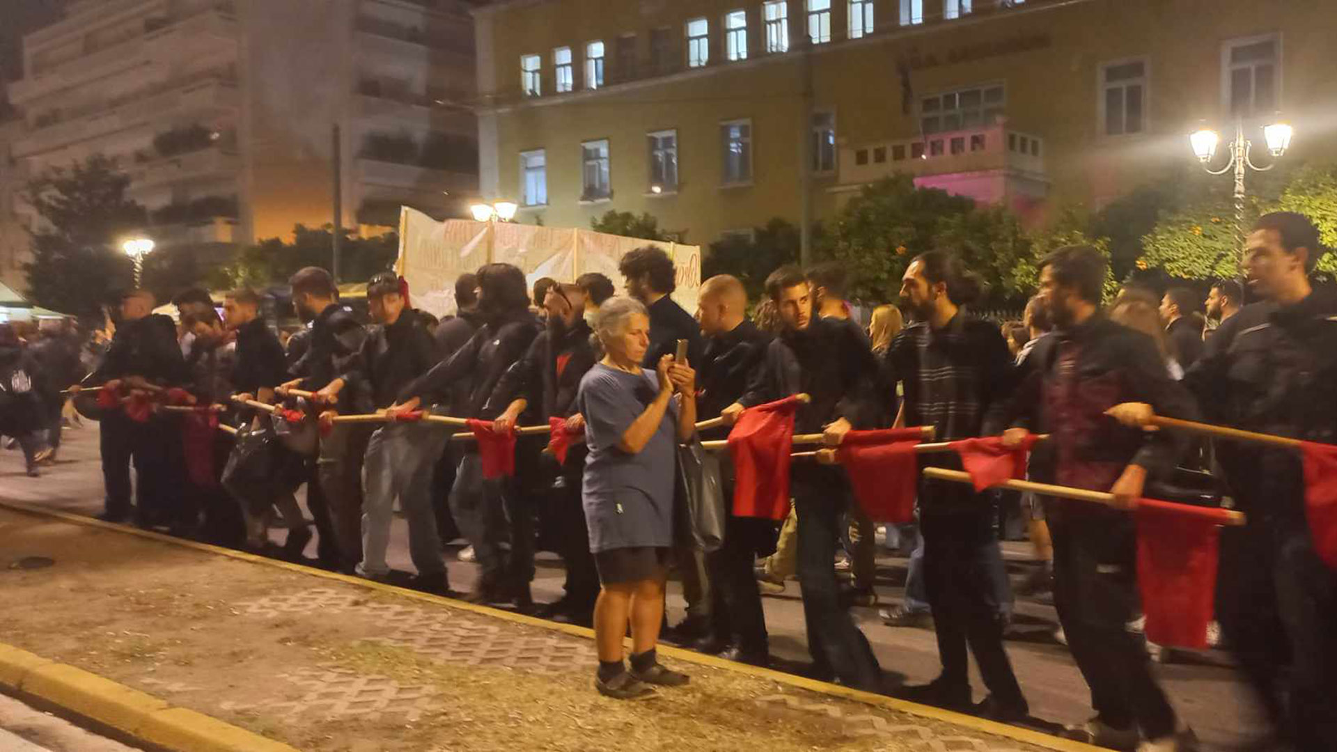 - 19:34Διαδηλωτές δίπλα στις αστυνομικές δυνάμεις