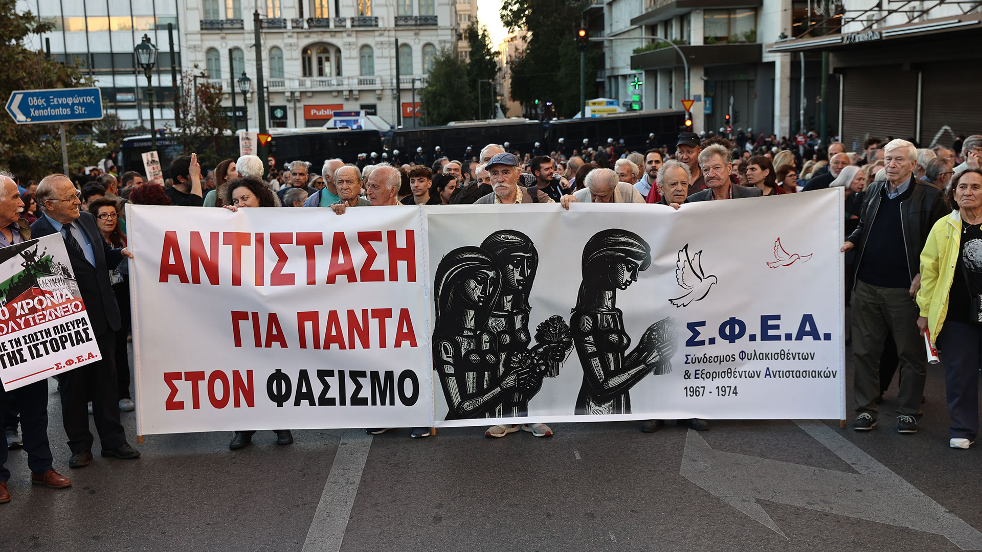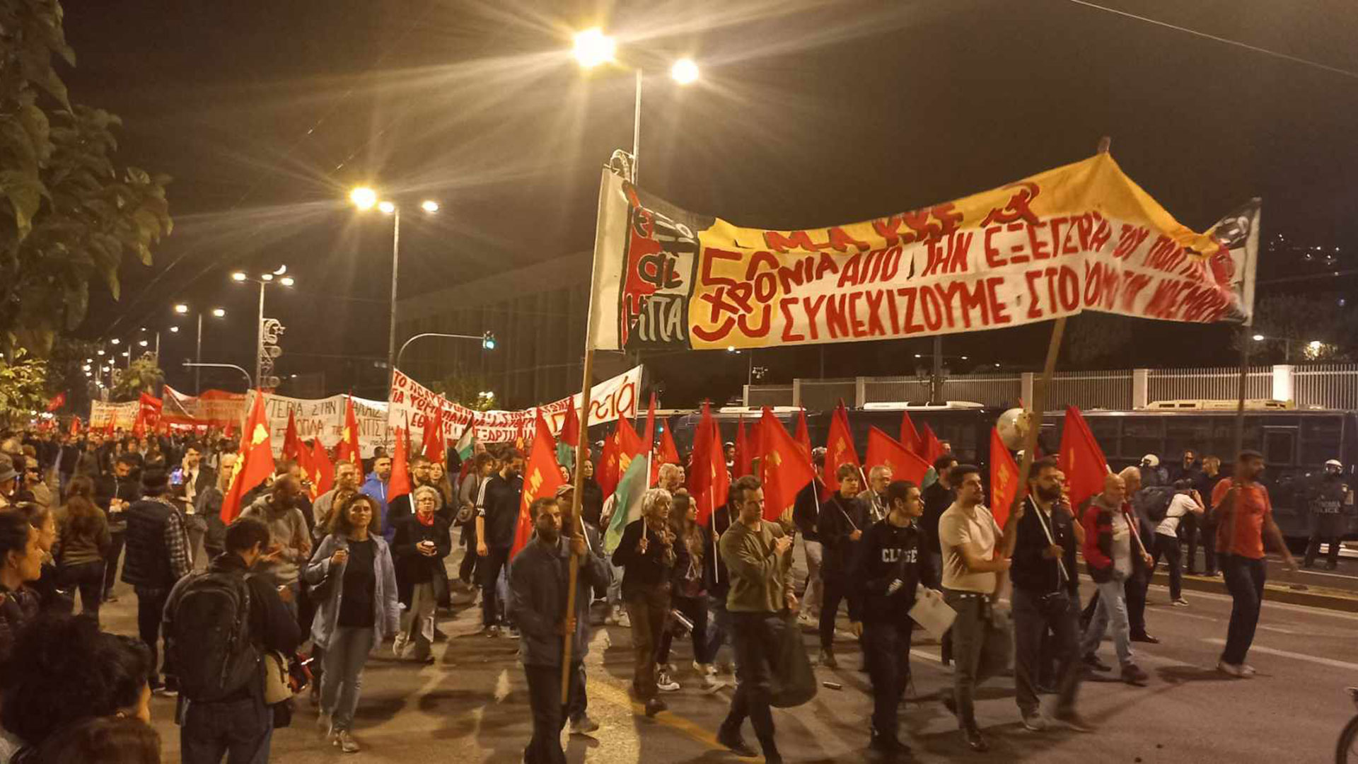 Σε εξέλιξη βρίσκεται η πορεία προς την πρεσβεία των ΗΠΑ για την 50ή επέτειο της εξέγερσης του Πολυτεχνείου.