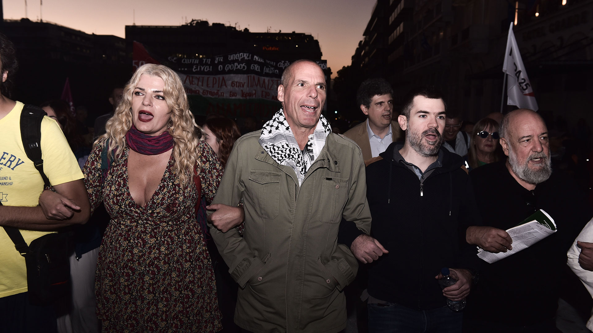 Στην πορεία συμμετέχει επίσης εκ μέρους του ΠΑΣΟΚ ο Ανδρέας Σπυρόπουλος, αλλά και ο επικεφαλής του Μέρα25, Γιάνης Βαρουφάκης.