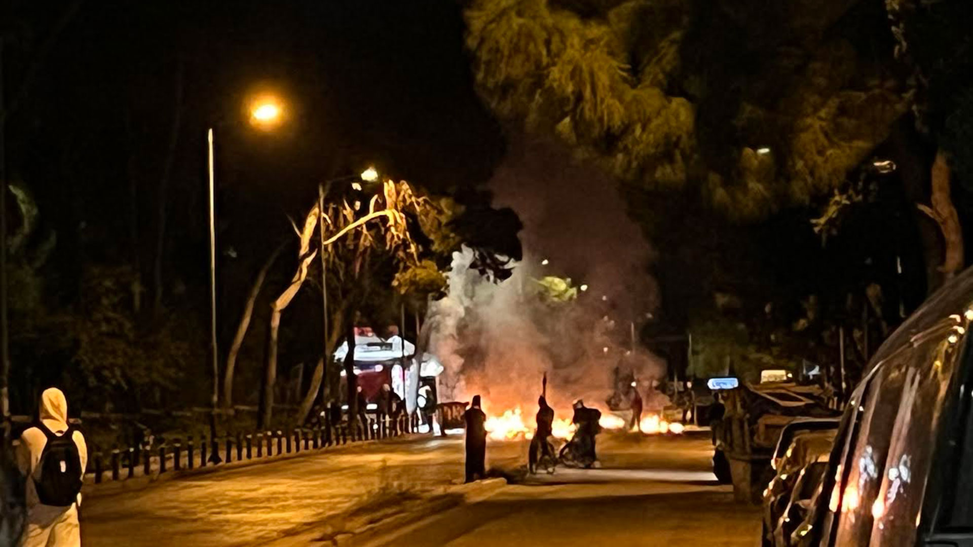 Επεισόδια σημειώθηκαν στην Πανεπιστημιούπολη Ζωγράφου, όπου ομάδα ατόμων έβαλε φωτιές σε κάδους και δημιούργησε οδοφράγματα.