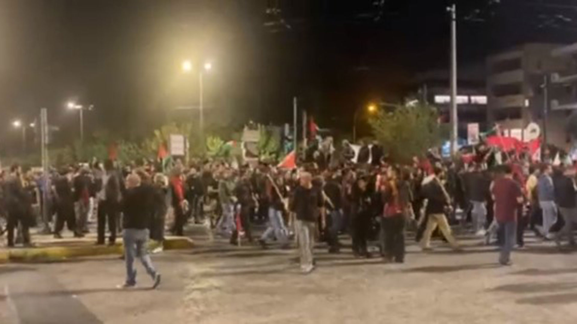Σύμφωνα με πληροφορίες, μεγάλο τμήμα των διαδηλωτών συνεχίζει την πορεία με κατεύθυνση την πρεσβεία του Ισραήλ, εν μέσω της συνεχιζόμενης πολεμικής κατάστασης στη Γάζα.