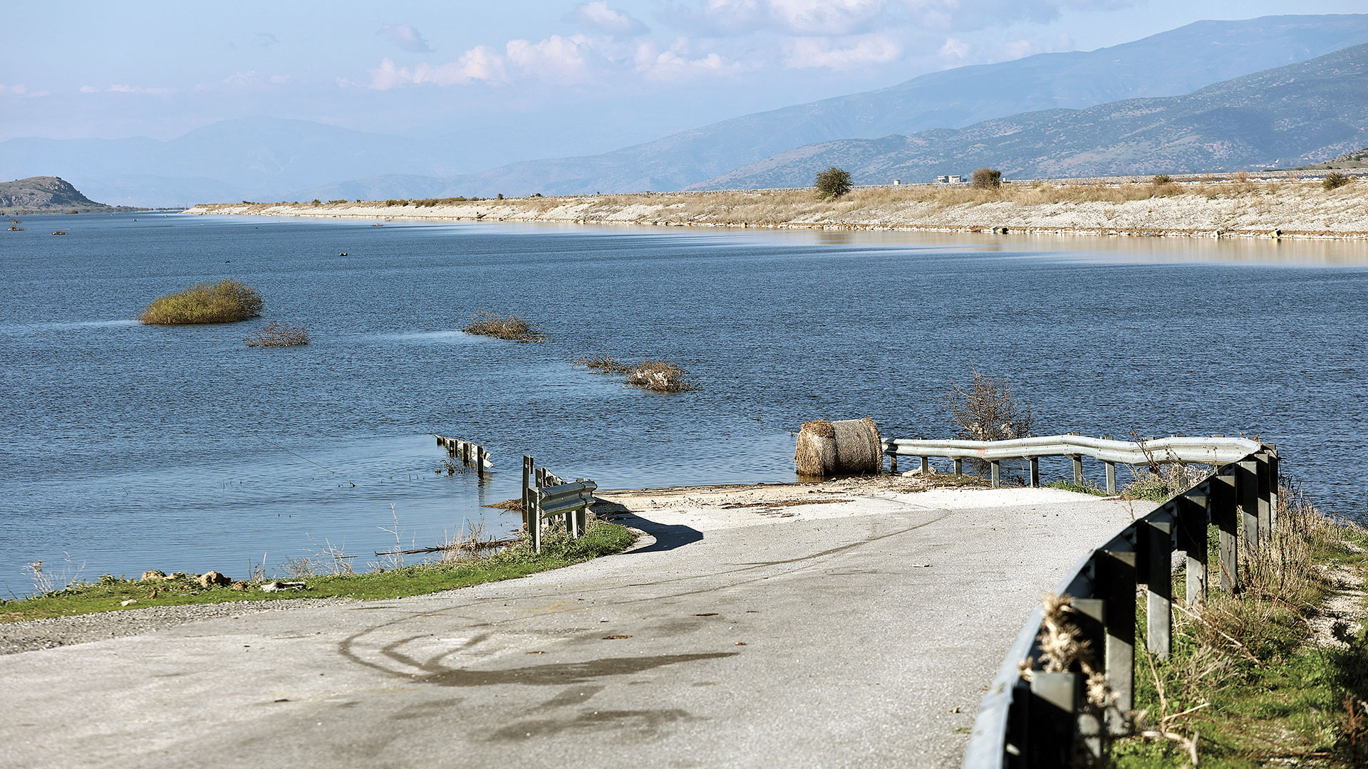 Ο κ. Πισινάρας δείχνει το ανάχωμα, που ξεχωρίζει σαν τοίχος μέσα στο νερό της λίμνης. «Στα δεξιά του αναχώματος βρίσκεται η νέα λίμνη Κάρλα, η αποκατάσταση της οποίας ξεκίνησε το 2000 και ολοκληρώθηκε το 2018. Θεωρείται το μεγαλύτερο έργο φυσικής αποκατάστασης στα Βαλκάνια. Στα αριστερά βρίσκονταν οι καλλιεργούμενες εκτάσεις. Σήμερα, μετά την πλημμύρα, η λίμνη έχει φτάσει ξανά τα 150-160 τ. χλμ. Υπολογίζεται ότι θα χρειαστεί γύρω στα δύο χρόνια για να φύγει το νερό». «Μήπως θα έπρεπε να αφήσετε τη λίμνη να ξαναδημιουργηθεί;», ρωτάει ένας από τους επιστήμονες. Δεν υπάρχει εύκολη απάντηση.