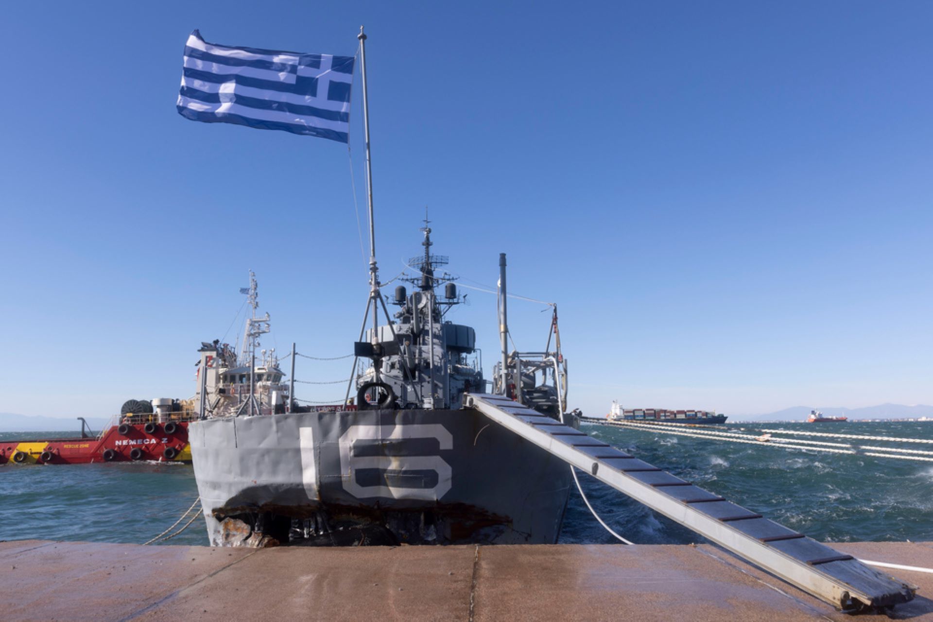 Συντονισμένη επιχείρηση για να στεγανοποιηθεί το ρήγμα που προκλήθηκε, εξαιτίας των θυελλωδών ανέμων, στην πρύμνη του ιστορικού αντιτορπιλικού πλοίου «Βέλος» είναι σε εξέλιξη από το πρωί.