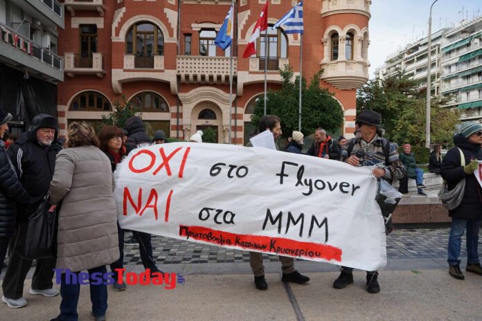 Συγκέντρωση διαμαρτυρίας ενάντια στην κατασκευή του Flyover πραγματοποίησαν μέλη συλλογικοτήτων και συλλόγων της πόλης στον πεζόδρομο της Αγίας Σοφίας στη Θεσσαλονίκη.