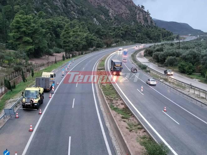 Μέσω αμφιδρόμησης του ρεύματος προς Πάτρα, διεξάγεται η κυκλοφορία των οχημάτων προς Αθήνα στην εθνική οδό Πατρών – Αθηνών, στο ύψος του Ελαιώνα της Αιγιάλειας.