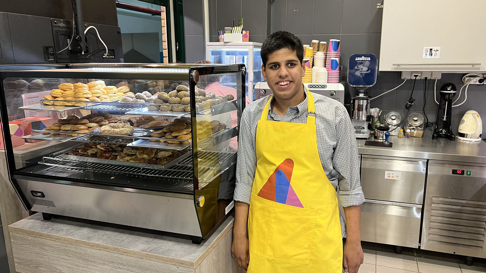 Ο 22χρονος Χρήστος κάθε πρωί, από Δευτέρα έως Παρασκευή είναι συνεπής στο ραντεβού του. Ανεβαίνει στο λεωφορειάκι που τον παραλαμβάνει μπροστά από το ίδρυμα που φιλοξενείται και λίγη ώρα αργότερα κατεβαίνει στο παλιό του σχολείο, στο Εργαστήρι Ειδικής Επαγγελματικής Εκπαίδευσης και Κατάρτισης (Ε.Ε.Ε.ΕΚ.) στον Αγιο Δημήτριο. Εκεί, τον περιμένει η Διονυσία. Τις επόμενες ώρες οι δυο τους θα εξυπηρετήσουν τους μαθητές και τους καθηγητές που θα αγοράσουν σνακ και ροφήματα από το κυλικείο της ΚοινΣΕπ 3S School Synergy Snacks. Πρόκειται για υποστηριζόμενη εργασία, καθώς ο Χρήστος δεν μπορεί να λειτουργήσει το κυλικείο μόνος του. Η Διονυσία είναι διαρκώς δίπλα του στην κάθε του προσπάθεια. «Δεν συμπαθεί τα Σαββατοκύριακα. Ερχεται τις Δευτέρες και μου λέει πως του έλειψε το κυλικείο. Τις πρώτες μέρες που δούλεψα εδώ στεναχωριόμουν, δεν ήμουν εξοικειωμένη με το περιβάλλον. Πλέον χαίρομαι με τη χαρά του Χρήστου, καταλαβαίνω πως νιώθει σημαντικός που είναι εργαζόμενος». Τα λόγια της τα επιβεβαιώνει και ο ίδιος ο Χρήστος που όπως λέει «δεν κάνω διακρίσεις, όλες οι δουλειές στο κυλικείο μου αρέσουν το ίδιο».