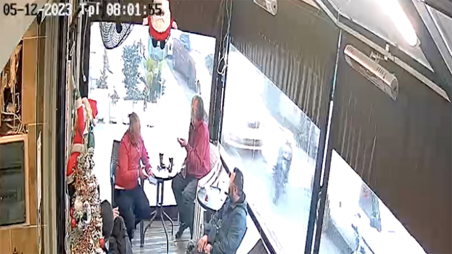 Στα πλάνα από κάμερα ασφαλείας σε καφετέριας στο Κερατσίνι, ο άνδρας έχει καταγραφεί ώρες μετά το έγκλημα να πίνει καφέ.