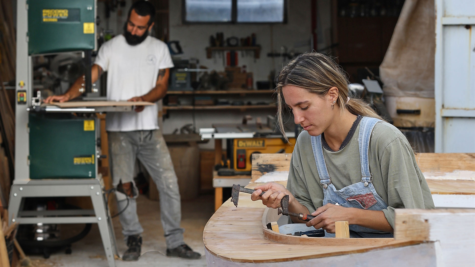Οι παλιοί καραβομαραγκοί λένε πως όταν ακούγεται το πρόσταγμα «φόρα βόλτα», όταν φεύγει το σόκορο, δηλαδή ο τάκος, και ένα πλεούμενο αφήνει πίσω του τη στεριά για να γλιστρήσει στο νερό, κάνει ένα χαρακτηριστικό τρίξιμο. Εκείνοι το θεωρούν ένα είδος αποχαιρετισμού: το σκαρί και ο μάστοράς του χωρίζουν για πάντα. Η Ιωάννα Μουτουσίδη και ο Γιάννης Μπορμπαντωνάκης λίγες φορές έχουν ακούσει αυτόν τον ήχο. Στο ξεκίνημά τους βρίσκονται, άλλωστε. Στην αρχή μιας πορείας δύσκολης αλλά γεμάτης συγκινήσεις: πριν από μερικά χρόνια αποφάσισαν να γίνουν καραβομαραγκοί. Tο εργαστήριό τους βρίσκεται στην Ερμούπολη της Σύρου. Εκεί μας υποδέχτηκαν.