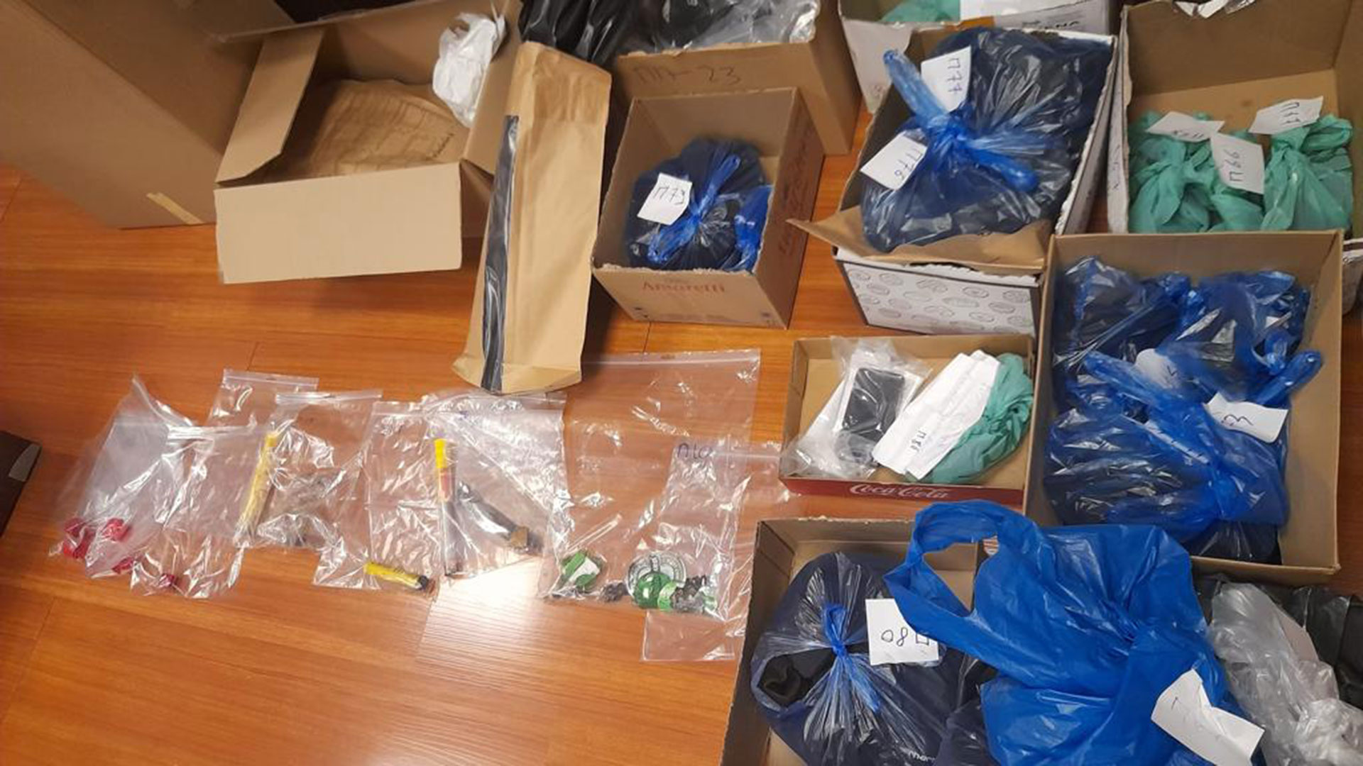 Τα ευρήματα έχουν σταλεί στα εγκληματολογικά εργαστήρια σε αναζήτηση δακτυλικών και γενετικών αποτυπωμάτων προκειμένου να γίνει αντιπαραβολή με αποτυπώματα που έχουν ληφθεί από τους 424 προσαχθέντες.