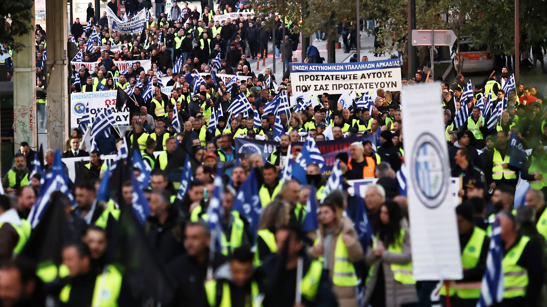 «Οχι άλλο αίμα, επικίνδυνο τώρα», έγραφε το πανό της Πανελλήνιας Ομοσπονδίας Αξιωματικών Αστυνομίας, το οποίο μέλη της ομοσπονδίας κρατούσαν ενώ ήταν καθισμένα επί της Βασιλίσσης Σοφίας, καθώς άλλοι συνάδελφοί τους κρατούσαν αναμμένα λευκά κεριά. «Προστατέψτε αυτούς που σας προστατεύουν», έγραφε το πανό της Ενωσης Αστυνομικών Υπαλλήλων Πρέβεζας. «Υπηρετούμε στα όρια, μας εξωθείτε στα άκρα», ανέφερε το πανό της Πανελλήνιας Ομοσπονδίας Ενώσεων Προσωπικού Λιμενικού Σώματος. Δεν είναι οι πρώτες συγκεντρώσεις διαμαρτυρίας ενστόλων τις τελευταίες ημέρες. Την προηγούμενη εβδομάδα, αστυνομικοί τόσο στην Αθήνα όσο και στη Θεσσαλονίκη προέβησαν σε συγκεντρώσεις διαμαρτυρίας ζητώντας την απεμπλοκή τους από τις αθλητικές διοργανώσεις.
