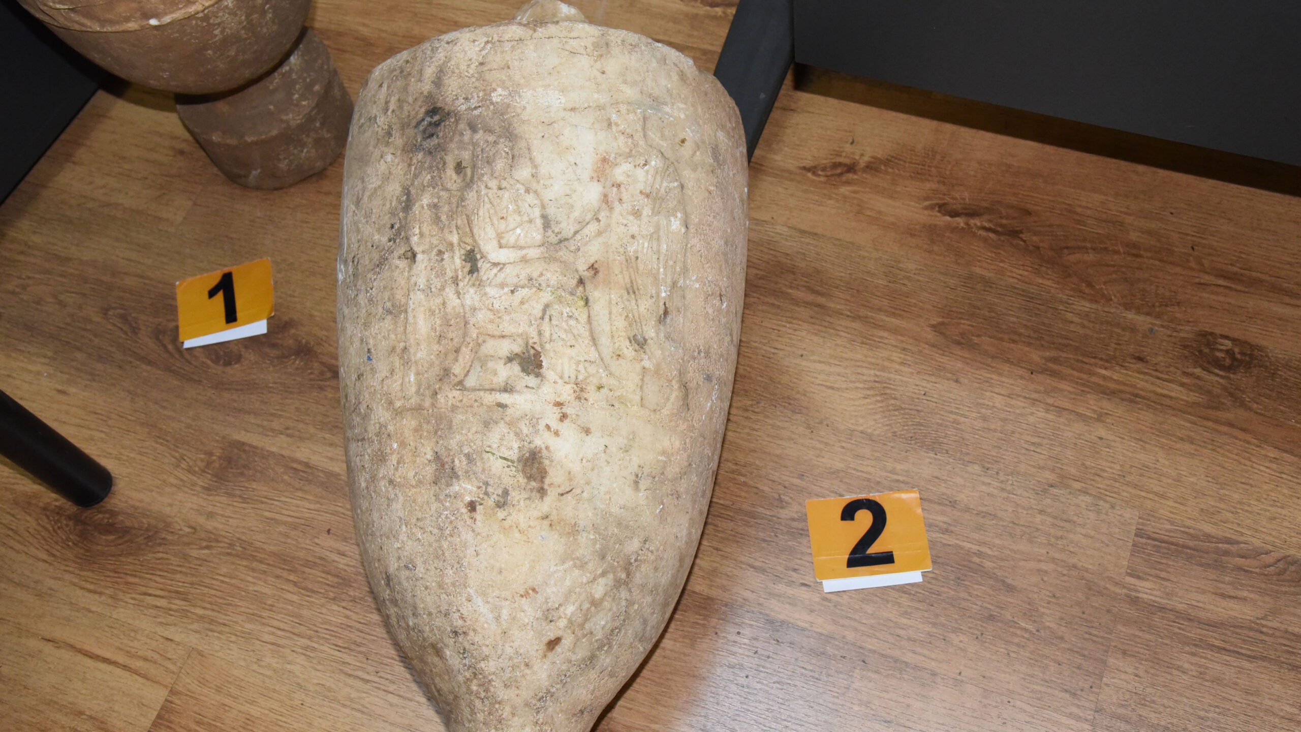 Επειτα από πληροφορία στους αστυνομικούς για πώληση αρχαίων αντί 50.000 ευρώ σε αγοραστή στην περιοχή της Χαλκίδας, συγκροτήθηκε κλιμάκιο. Εντοπίστηκε ο 56χρονος, έχοντας μέσα στο αυτοκίνητο του μαρμάρινο αντικείμενο, με ανάγλυφη παράσταση κεφαλής ίππου, διαστάσεων 17χ20χ6 cm, το οποίο χρονολογείται στην ελληνιστική ή ρωμαϊκή περίοδο (3ος αιώνας π.Χ. έως 2ο αιώνα μ.Χ.).