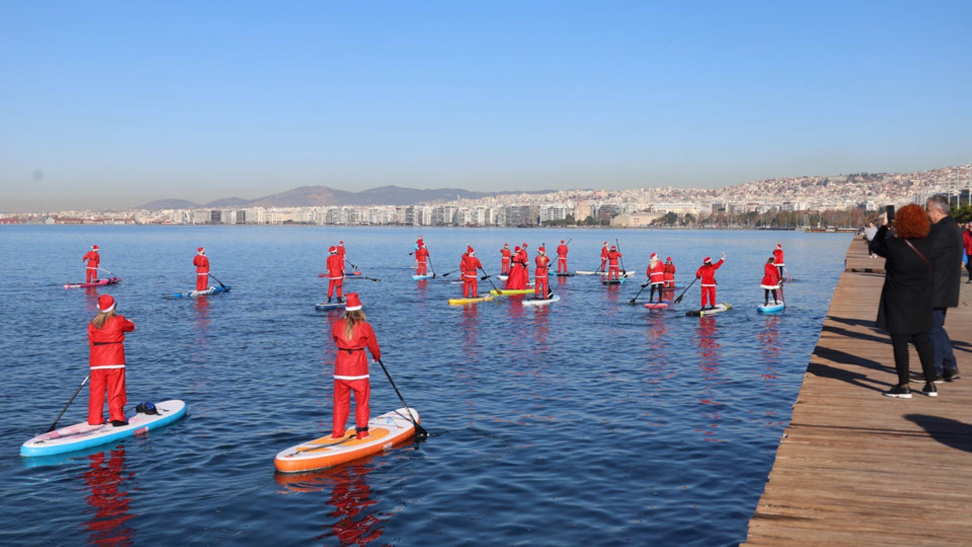 Ντυμένοι με στολές Άγιου Βασίλη και με γιορτινή διάθεση, αθλητές της όρθιας σανιδοκωπηλασίας – SUP, διέσχισαν τον Θερμαϊκό.