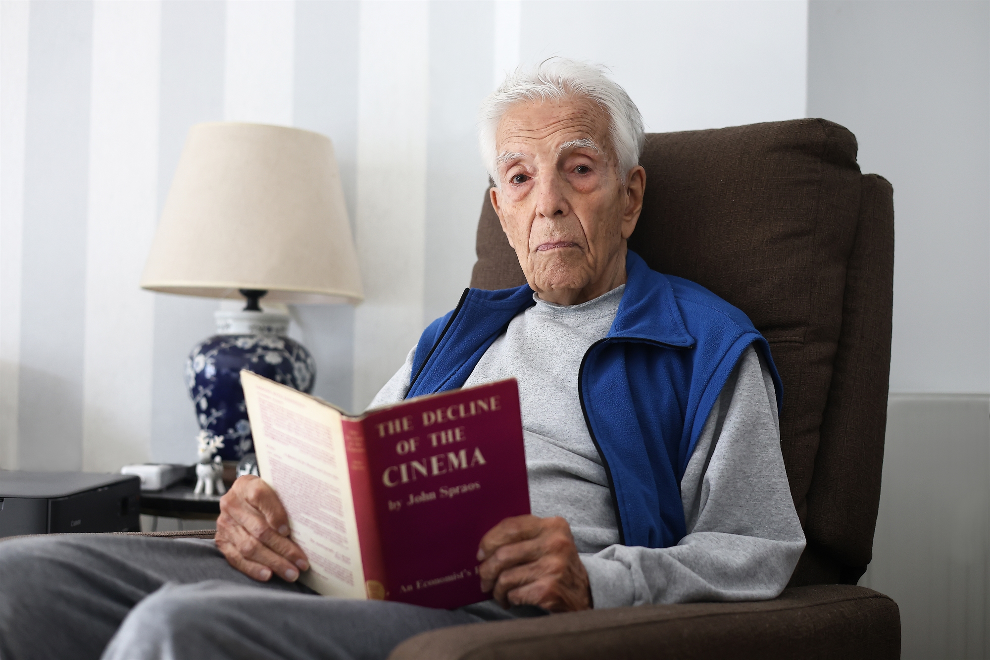 Ο Σπράος άφησε πίσω του τις μνήμες και τις παρέες της Αντίστασης και του Εμφυλίου και αφοσιώθηκε στη ζωή του στην Αγγλία. Το 1962 έκανε μια έρευνα για την κινηματογραφική βιομηχανία με τίτλο «The Decline of the Cinema» («Η παρακμή του κινηματογράφου») που έχει μείνει κλασική γιατί αναλύει με διαχρονικούς όρους τη δυναμική της υποκατάστασης ενός μέσου (κινηματογράφος) από ένα άλλο (τηλεόραση). Πωλείται μέχρι σήμερα στο Amazon στην τιμή των 170 ευρώ (ψηφιακά στο Kindle με 50 ευρώ). «Ανέλαβα αυτή την έκθεση για λογαριασμό ενός βρετανικού σωματείου ιδιοκτητών κινηματογράφου, οι οποίοι ήταν μικροί σε αντιδιαστολή π.χ. με την αλυσίδα Odeon. Τότε, η πρώτη διανομή ταινιών πήγαινε στις μεγάλες αλυσίδες και ώσπου μια νέα ταινία να φτάσει στους μικρούς κινηματογράφους μπορεί να περνούσε ένας χρόνος. Ξεκίνησα να κάνω κάτι που θα τους βοηθούσε, αλλά τελικά έκανα κάτι εντελώς δικό μου. Γιατί εξακολουθεί να συζητιέται αυτή η έρευνα; Δεν ξέρω. Εκείνο που ξέρω είναι ότι στα 50 χρόνια, το 2012 μου ζητήθηκε η άδεια να την επανεκδώσουν».