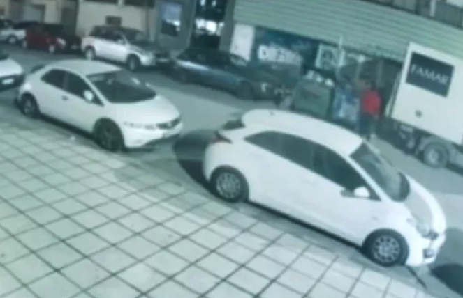 Λίγα δευτερόλεπτα αργότερα, οι κάμερες τους καταγράφουν να πετούν μία σακούλα σε κάδο απορριμμάτων.
