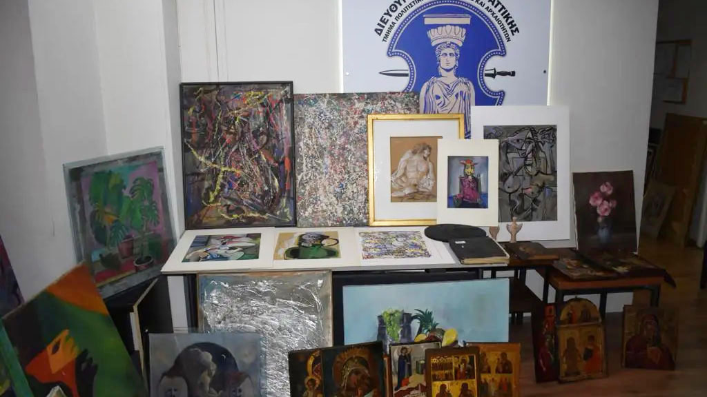 Στο σπίτι του ηλικιωμένου συλλέκτη στην περιοχή του Ψυχικού βρέθηκαν φωτογραφίες έργων τέχνης γνωστών καλλιτεχνών, καθώς και πίνακες ζωγραφικής που φέρουν τις υπογραφές διάσημων ζωγράφων. Στο σπίτι του ιδιοκτήτη της γκαλερί, αντίστοιχα, βρέθηκε και κατασχέθηκε πλήθος αρχαίων κειμηλίων, αλλά και θρησκευτικές εικόνες που εμπίπτουν στις διατάξεις του νόμου περί προστασίας της πολιτιστικής κληρονομιάς. Στο σπίτι του νεαρού ζωγράφου, τέλος, βρέθηκαν είδη ζωγραφικής αλλά και μεγάλος αριθμός πινάκων, αντιγράφων έργων των Πόλοκ, Πικάσο και Ματίς. Οι τέσσερις συλληφθέντες πήραν προθεσμία και αναμένεται να απολογηθούν στον ανακριτή την Παρασκευή.