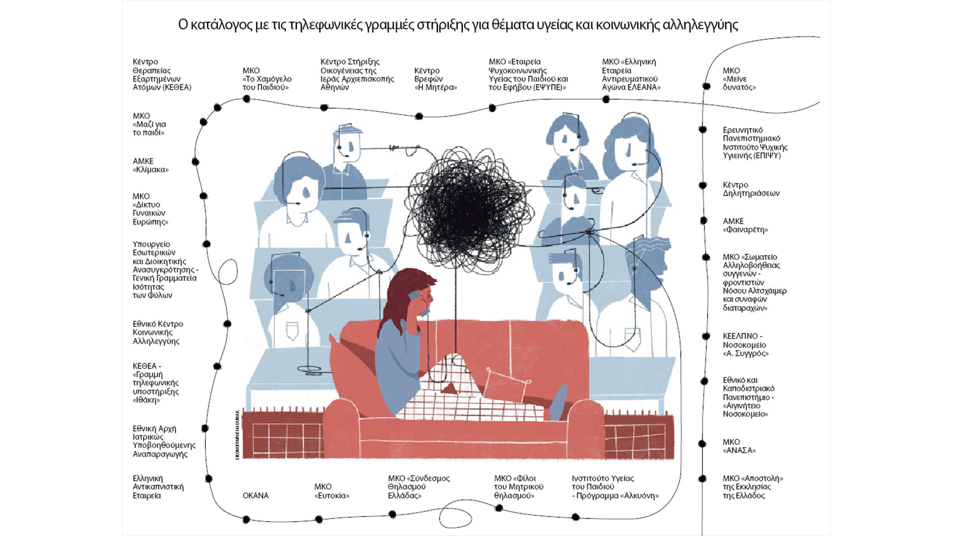 • Υπάρχουν δεκάδες τηλεφωνικές γραμμές στήριξης για θέματα υγείας και κοινωνικής αλληλεγγύης αλλά δεν υπάρχει καταγραφή εκβάσεων, ώστε να μπορούν να αξιολογηθούν οι παρεχόμενες υπηρεσίες, να εντοπιστούν τα προβλήματα, να καλυφθούν κενά και να γίνουν διορθώσεις.