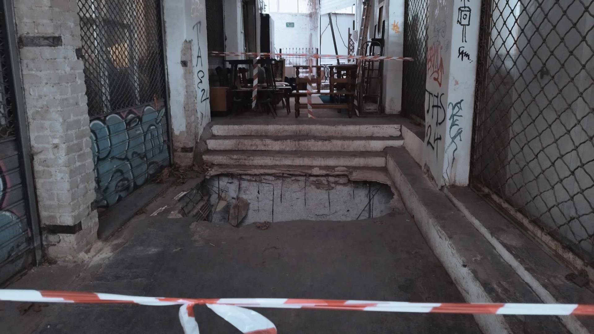 Μία τρύπα περίπου τριών μέτρων άνοιξε στο οδόστρωμα, στη στοά του Μπιτ Παζάρ στη Θεσσαλονίκη, λίγο πριν από τη 1 τα ξημερώματα, με αποτέλεσμα να «καταπιεί» έναν 19χρονο και μία συνομήλική του.