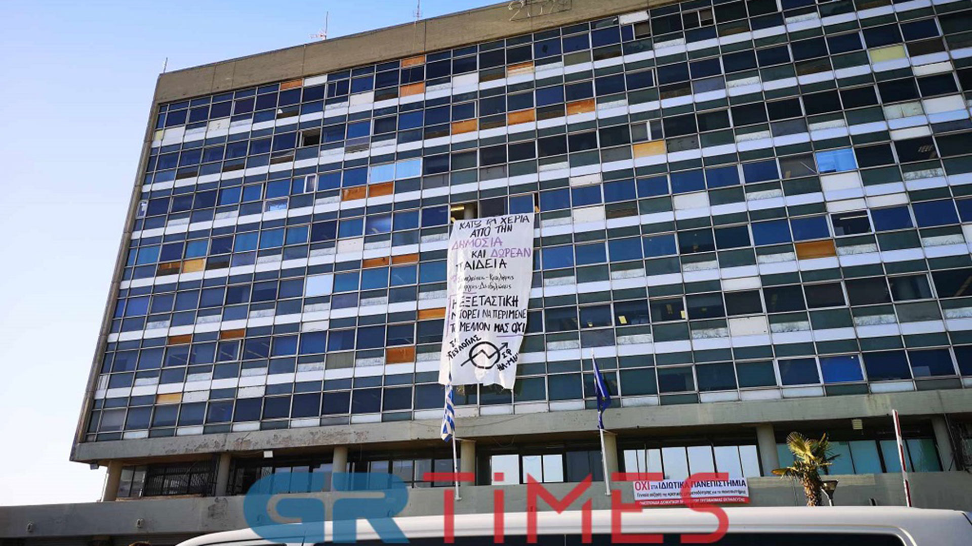 Ομάδα ατόμων που συμμετείχε στην πορεία κατά του νομοσχεδίου για τα μη κρατικά πανεπιστήμια στο κέντρο της Θεσσαλονίκης εισέβαλε στο κτίριο της πρυτανείας του ΑΠΘ και ανάρτησε γιγαντοπανό.