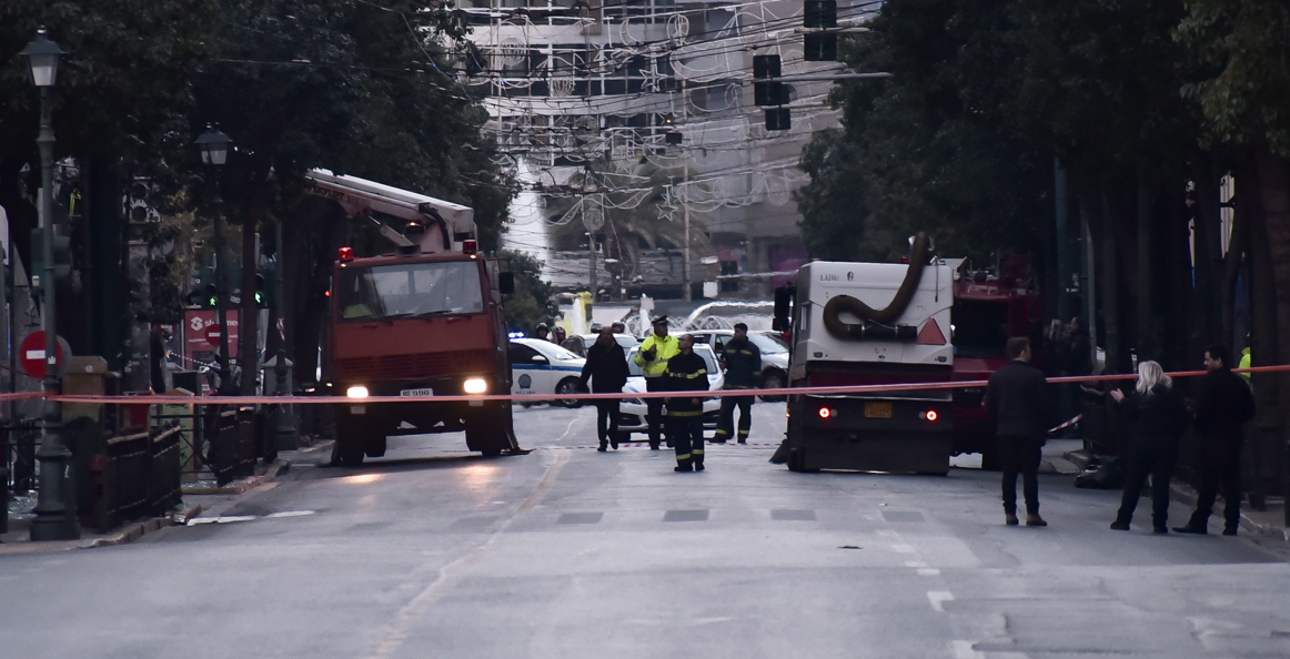 Η οδός Σταδίου είχε παραμείνει αποκλεισμένη καθ’ όλη τη διάρκεια της νύχτας, καθώς πυροτεχνουργοί της ΕΛΑΣ σάρωσαν την περιοχή για την περισυλλογή στοιχείων.