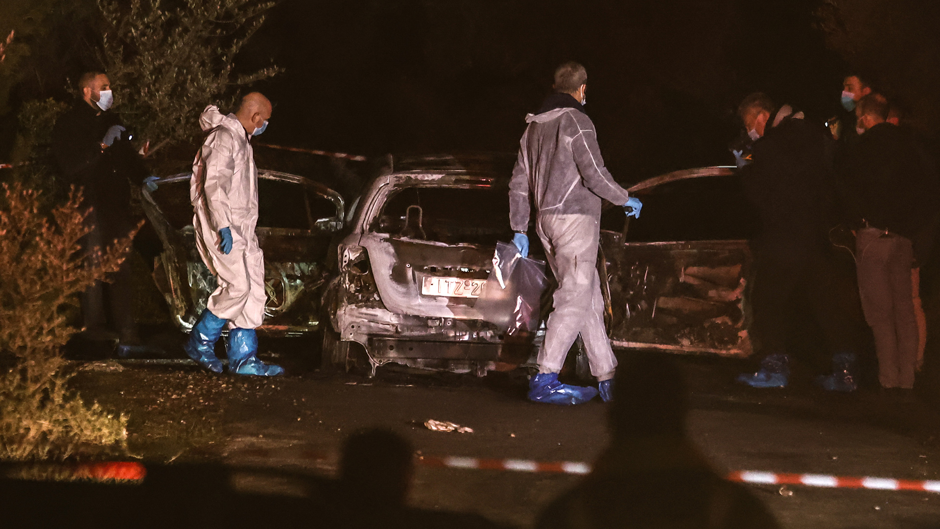 Πρώτη στο σημείο έφτασε η Πυροσβεστική, η οποία έσβησε τη φωτιά και βρήκε στο εσωτερικό του οχήματος την απανθρακωμένη σορό του θύματος, αλλά και το καλάσνικοφ των δραστών.