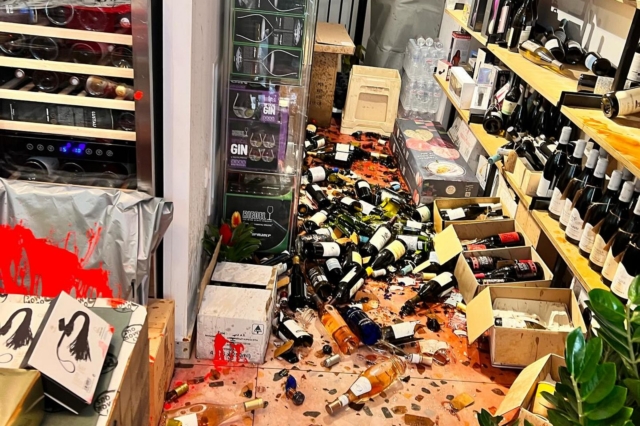 Οι δράστες, κατά την έφοδό τους, έσπασαν δεκάδες μπουκάλια κρασιού, κατέστρεψαν τα λουλούδια που διατίθενταν στο κατάστημα προς πώληση και, μέσα σε δευτερόλεπτα, κατέστρεψαν ό,τι βρήκαν μπροστά τους. Φεύγοντας, πέταξαν τρικάκια.