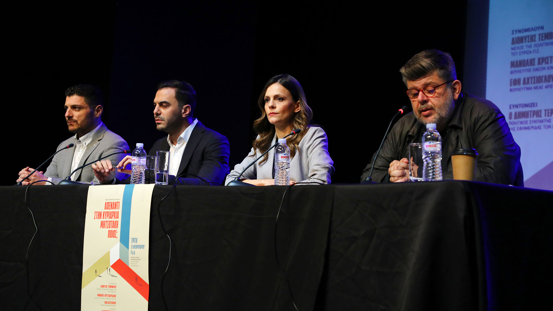 Στις ομιλίες τους τα τρία στελέχη υποστήριξαν τις στρατηγικές που ακολουθούν τα κόμματά τους. Ο Διονύσης Τεμπονέρας επισήμανε πως μοναδικό μέλημα είναι να στηρίξουμε και να δυναμώσουμε το «σπίτι μας, τον ΣΥΡΙΖΑ», συμπληρώνοντας πως «η ιστορία της Αριστεράς υπήρξε ανέκαθεν μια ιστορία όχι μόνο διασπάσεων, αλλά και μεγάλων συνθέσεων. Αυτός είναι και ο λόγος που δεν συμμερίζομαι την απόφαση των πρώην συντρόφων μου να αποχωρήσουν από τον ΣΥΡΙΖΑ-Π.Σ. Σήμερα πολύ περισσότερο χρειαζόμαστε πρόσθεση και όχι αφαίρεση». Mε αρκετά στελέχη του ΠΑΣΟΚ να δίνουν το «παρών» στην κατάμεστη αίθουσα, ο Μανώλης Χριστοδουλάκης επισήμανε πως «απέναντι στην πολιτική της Νέας Δημοκρατίας οφείλουμε να προτάξουμε θέσεις, ιδέες, ιστορία, αξίες, αρχές. Αυτές που εγώ τουλάχιστον προσωπικά θεωρώ πως κυρίαρχα μόνο το ΠΑΣΟΚ και η δημοκρατική παράταξη μπορεί να διαμορφώσει και να εκφράσει σε ρόλο πρωταγωνιστή». Η Εφη Αχτσιόγλου σημείωσε πως «αυτός ο πολιτικός χώρος που θα καταφέρει να ενοποιήσει τις κοινωνικές δυνάμεις, κατά τη γνώμη μου δεν βρίσκεται ούτε στο σημερινό ΠΑΣΟΚ ούτε στον σημερινό ΣΥΡΙΖΑ», συμπληρώνοντας πως η Νέα Αριστερά θέτει τρεις στόχους: «κοινωνική ισότητα, κλιματική δικαιοσύνη, επανεκκίνηση της δημοκρατίας».