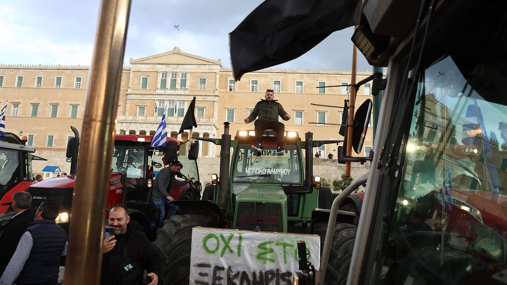 Η άφιξη των τρακτέρ στην πλατεία Συντάγματος pic.twitter.com/0QzkxJDrac