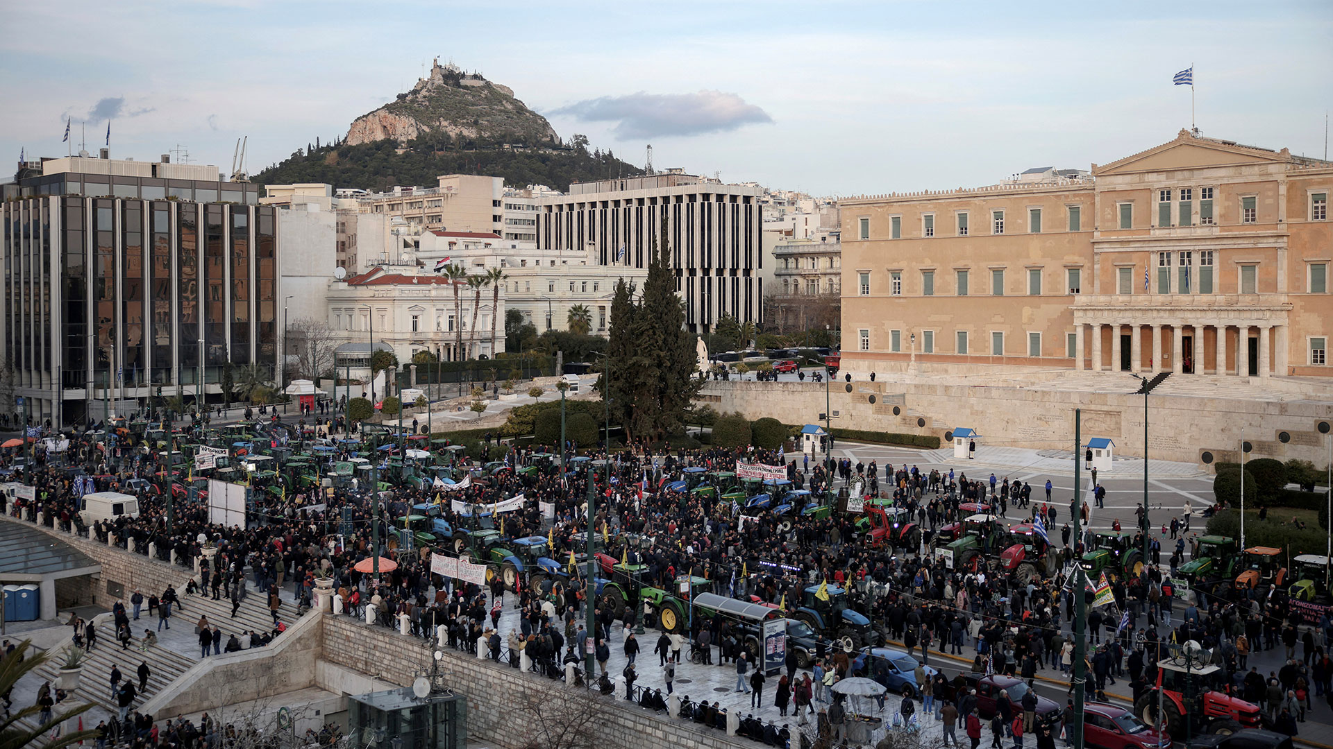 Στην πλατεία Συντάγματος βρίσκεται ο κύριος όγκος των αγροτών, που έχουν συρρεύσει στην πρωτεύουσα απ΄όλα τα μέρη της Ελλάδας, διεκδικώντας τα αιτήματά τους.