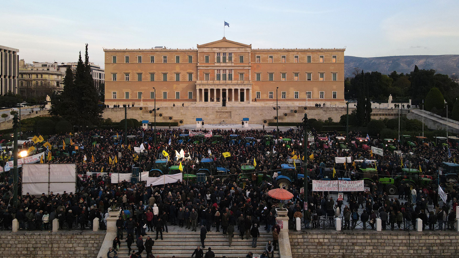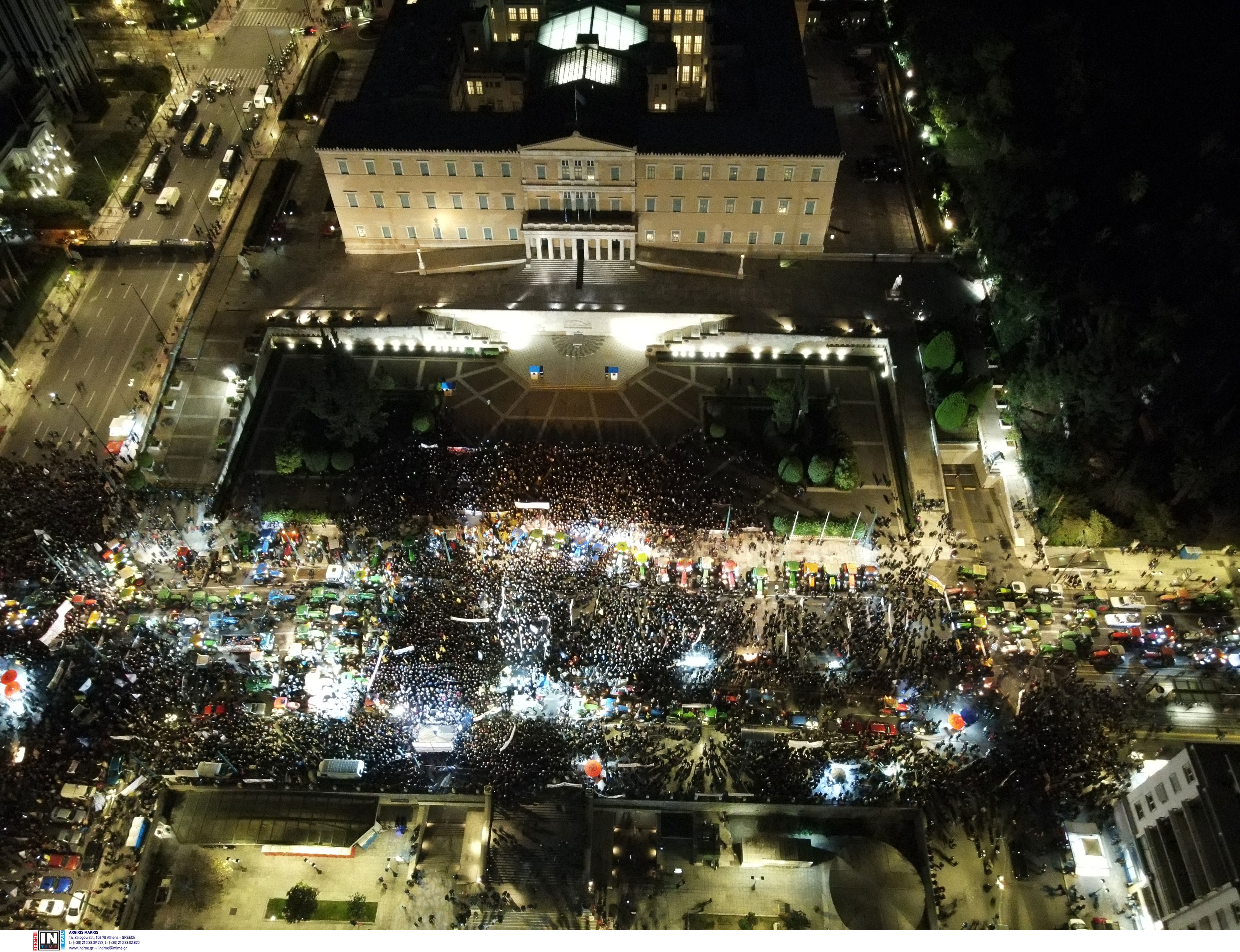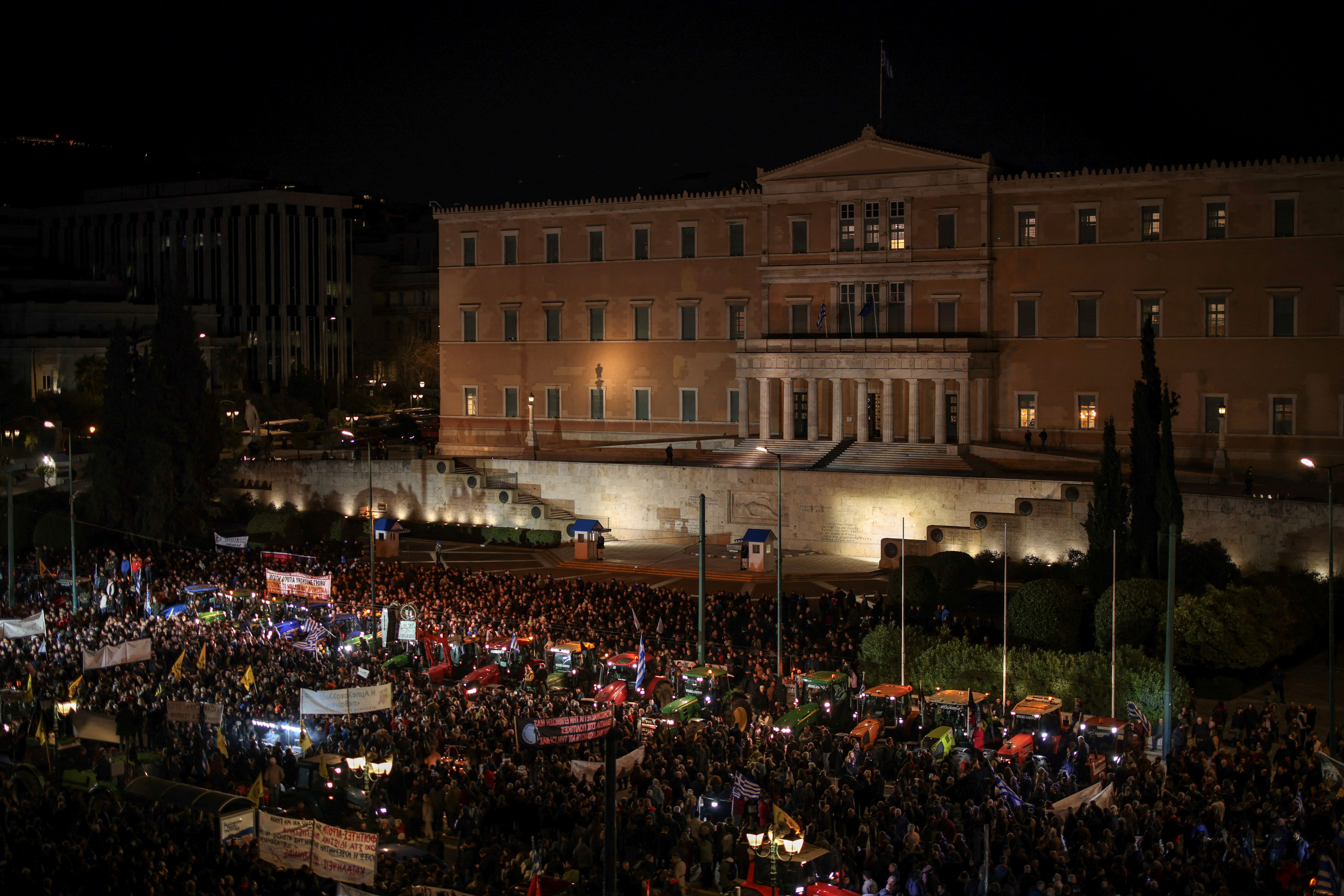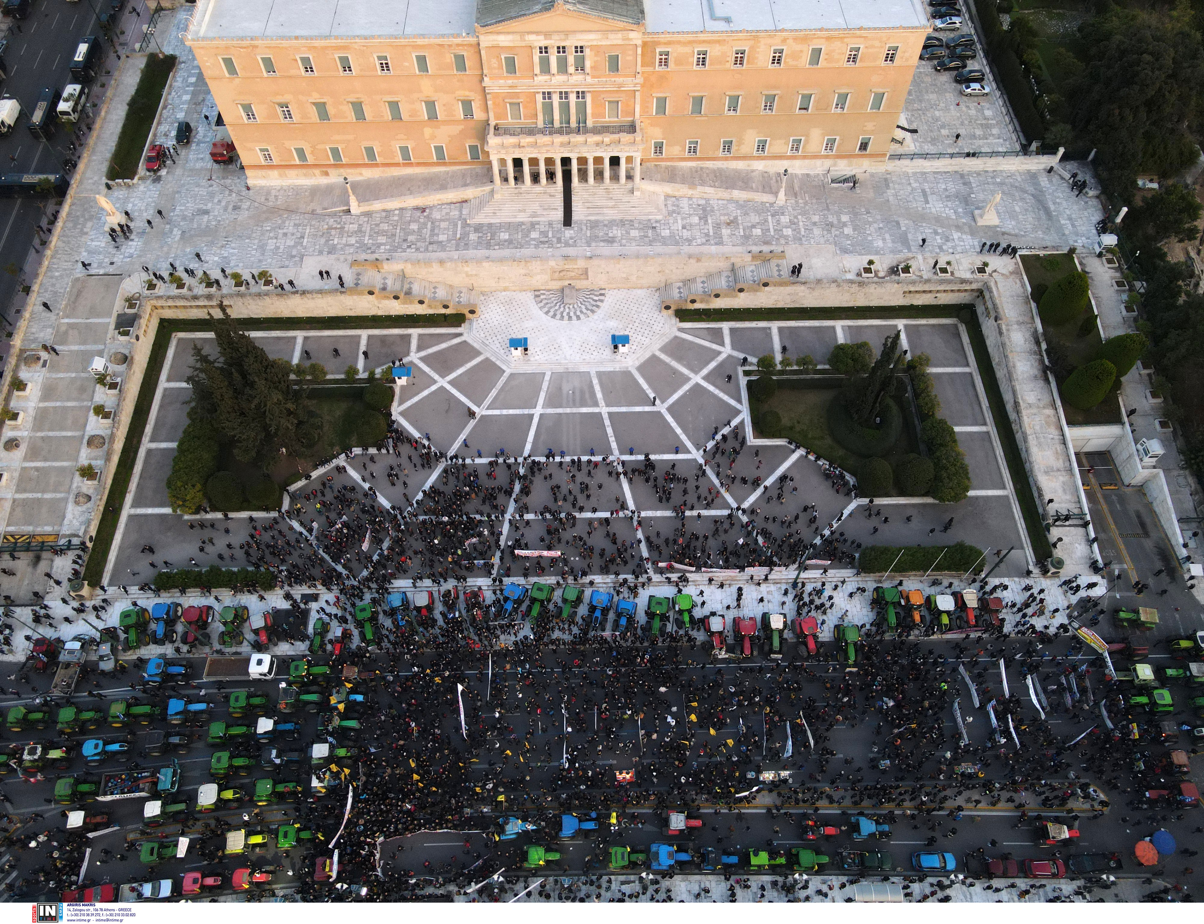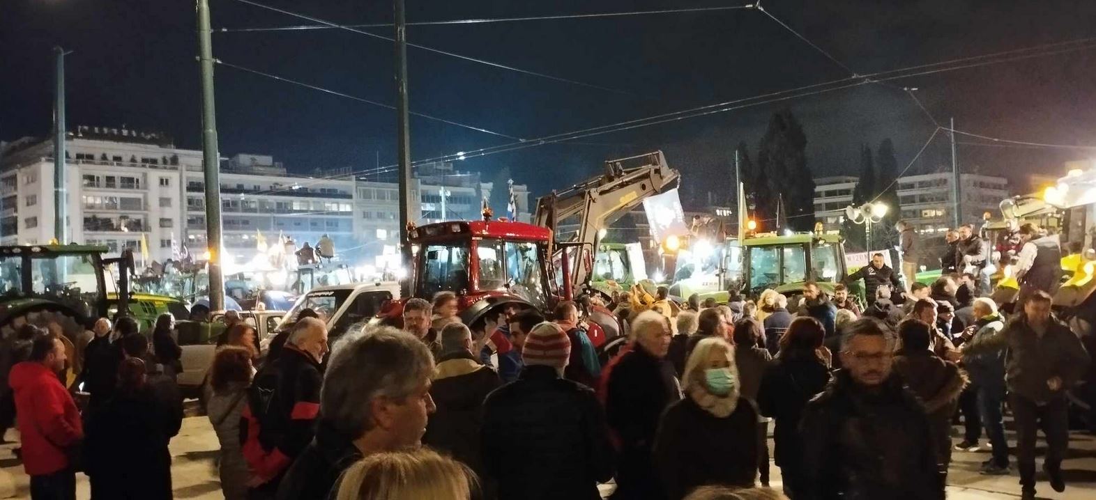 Μπροστά από το Κοινοβούλιο, η Λεωφόρος Βασιλίσσης Σοφίας είναι γεμάτη από τρακτέρ και επαγγελματικά οχήματα και ο κόσμος πολύς, αφού στους διαδηλωτές έχουν προστεθεί ομοσπονδίες, σωματεία και συνδικάτα εργαζομένων από δεκάδες τομείς, που βρίσκονται στο Σύνταγμα για να συμπαρασταθούν στους αγρότες, τους οποίους υποδέχτηκαν με το σύνθημα: «Εργατιά, αγροτιά ενωμένοι μια γροθιά»